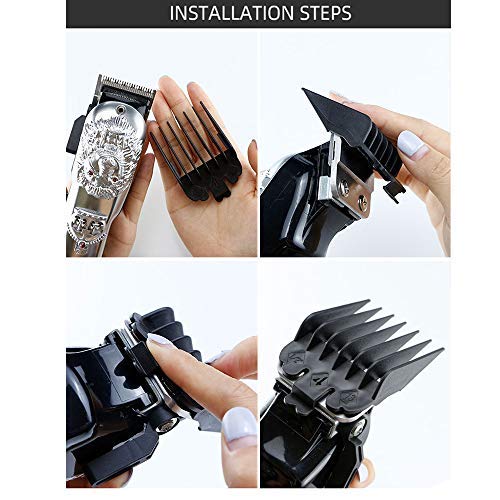 - ★ EASY TO OPERATION: Simply attach comb to the base of the blade and pull up to secure. These clipper guards for wahl are sturdily built, easy to snap on and take off, with big size clipper combs, you can keep volume on top, enjoy smooth and time saving finish that both you and your client will appreciate.