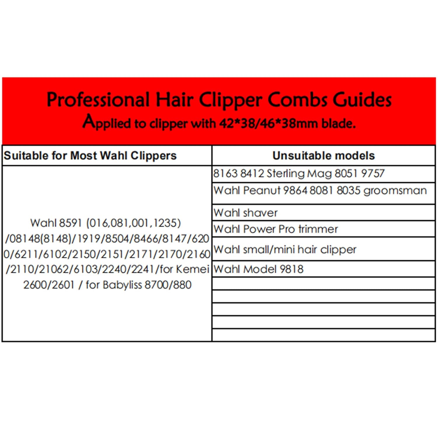- ★ ★★ WARM TIPS ★ ★★: Please check your HAIR CLIPPER'S SIZE/MODEL before purchased. Not fit for WAHL PEANUT, WAHL POWER PRO TRIMMER, WAHL PRO, WAHL KM2 and WAHL SMALL/MINI HAIR CLIPPER. Universal Clipper Limit Comb fits for Wahl 6102, 2150, 2151, 2171, 2170, 2160, 2110, 21062, 6130, 8591, 8148, 1919, 8504, 6200, 6211, 2240, 2241, 2111. And it also can be applied to clipper with 46*38mm blade.
