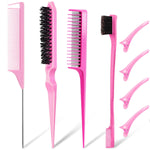 - 8 Pcs Styling Hair Comb Brush Set with Teasing Edge Brush Parting Rat Tail Comb Hairclip for Women Slicking Ponytail and Smoothing Hair(Pink)