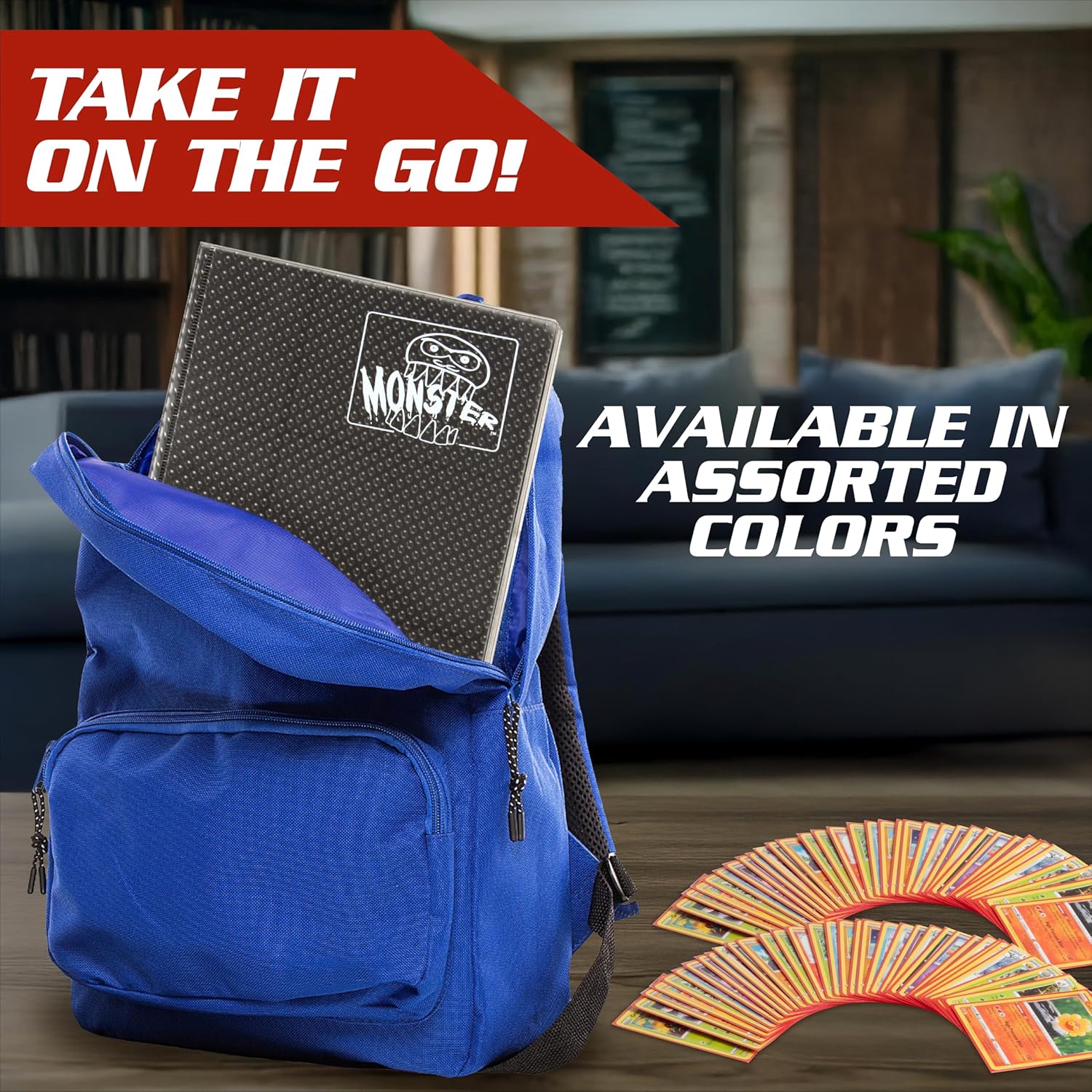 Monster's 9-Pocket Binders have a 360 carrying card capacity with 18 side loading pockets on each page (9 on the front side, 9 on the back side). Featuring 20 cushioned pages to protect cards whether they are sleeved or not.