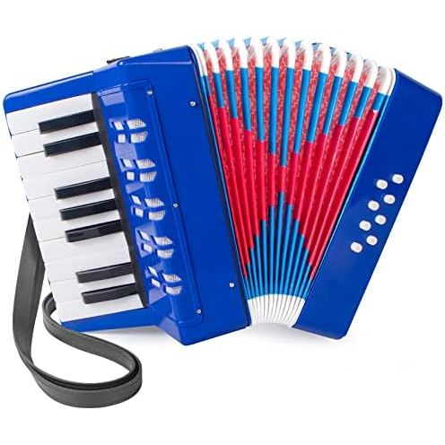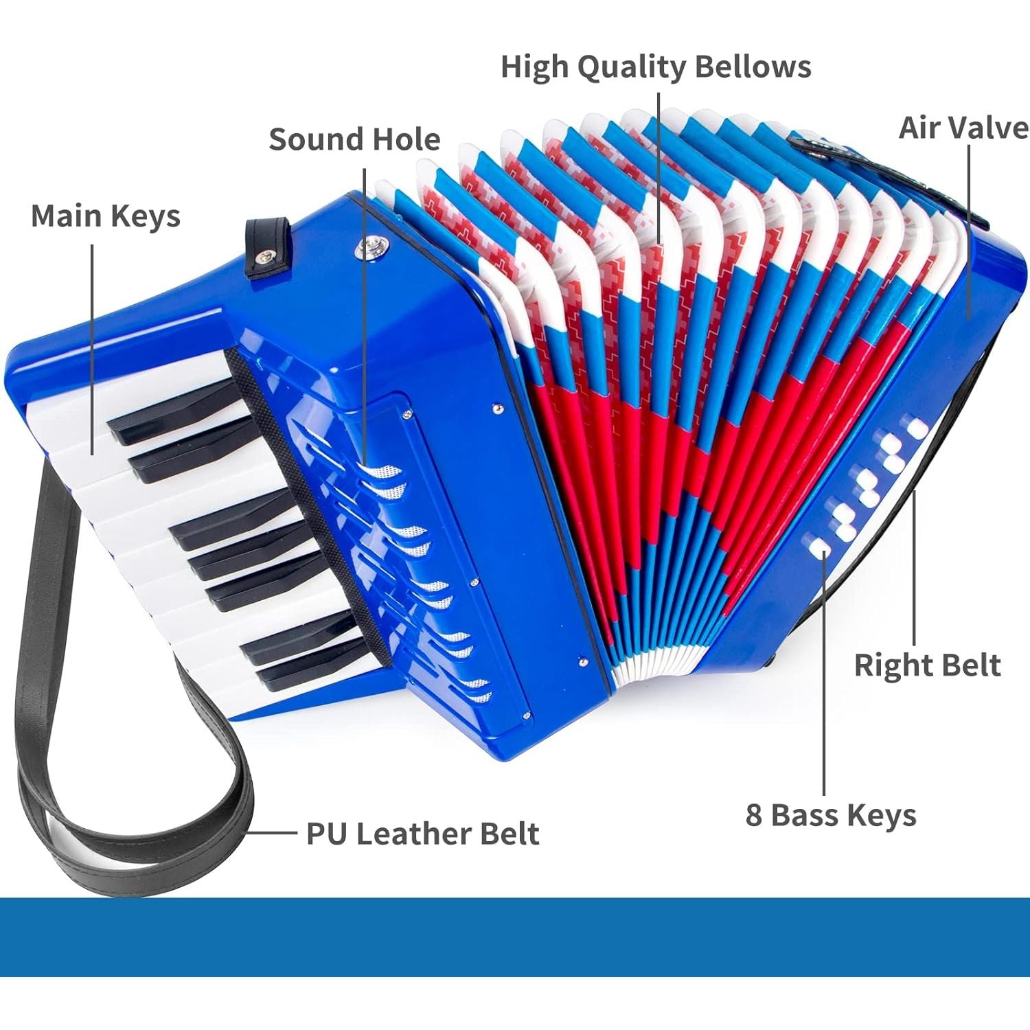 - Accordion, 17 Keys Piano Accordion 8 Bass with Straps for Beginners Kids Student Educational Musical Instrument (Blue)