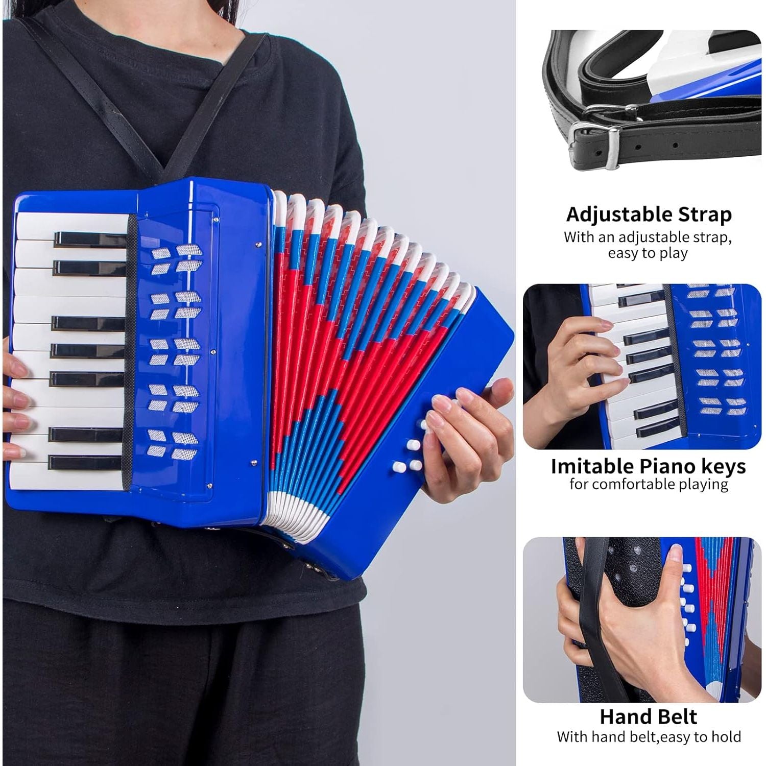 - Great Design: With imitable piano keys, adjustable PU leather strap and hand belt, this 17 keys accordion is easy to play and it provides wonderful play experience and feel. It is a great accordion for students, kids and beginners.