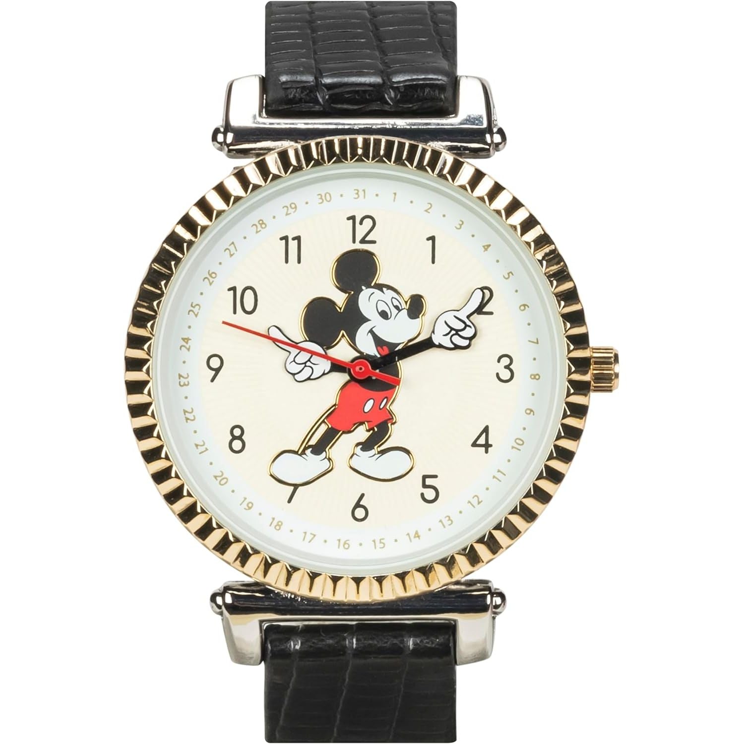 - PERFECT FOR DISNEY FANS: Whether you're a lifelong Disney enthusiast or just looking for a unique timepiece, this watch makes for an ideal gift or collectible item for Disney fans of all ages. Its black leather band adds a touch of elegance to the beloved Mickey Mouse design.