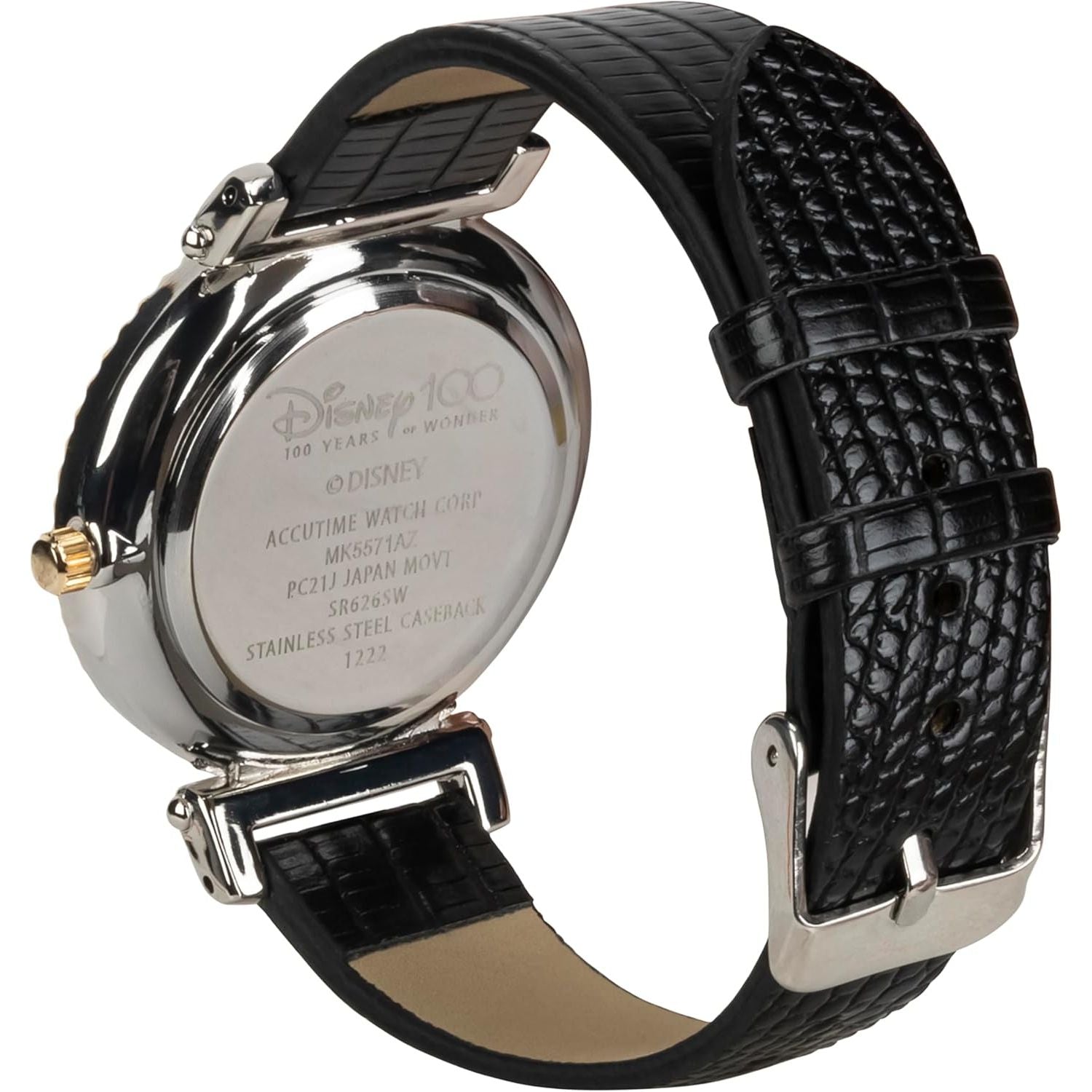 - Accutime Disney 100 Mickey Mouse Black Analog Watch for Men, Adults with Leather Band - Japanese Quartz Movement (Model: MK5571AZ)