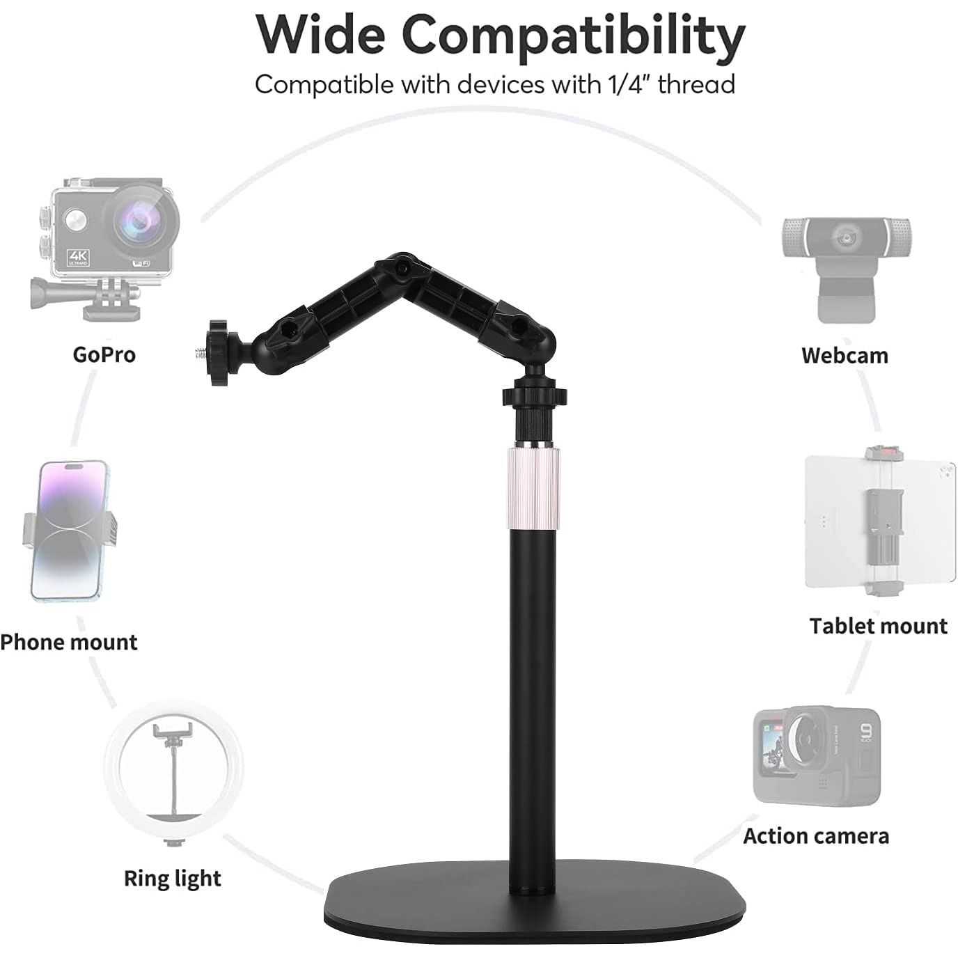 - Tabletop Webcam Holder: comes with 1/4''-20 thread, compatible with Logitech/Razer/Elgato webcams and any webcams with 1/4''-20 interface.