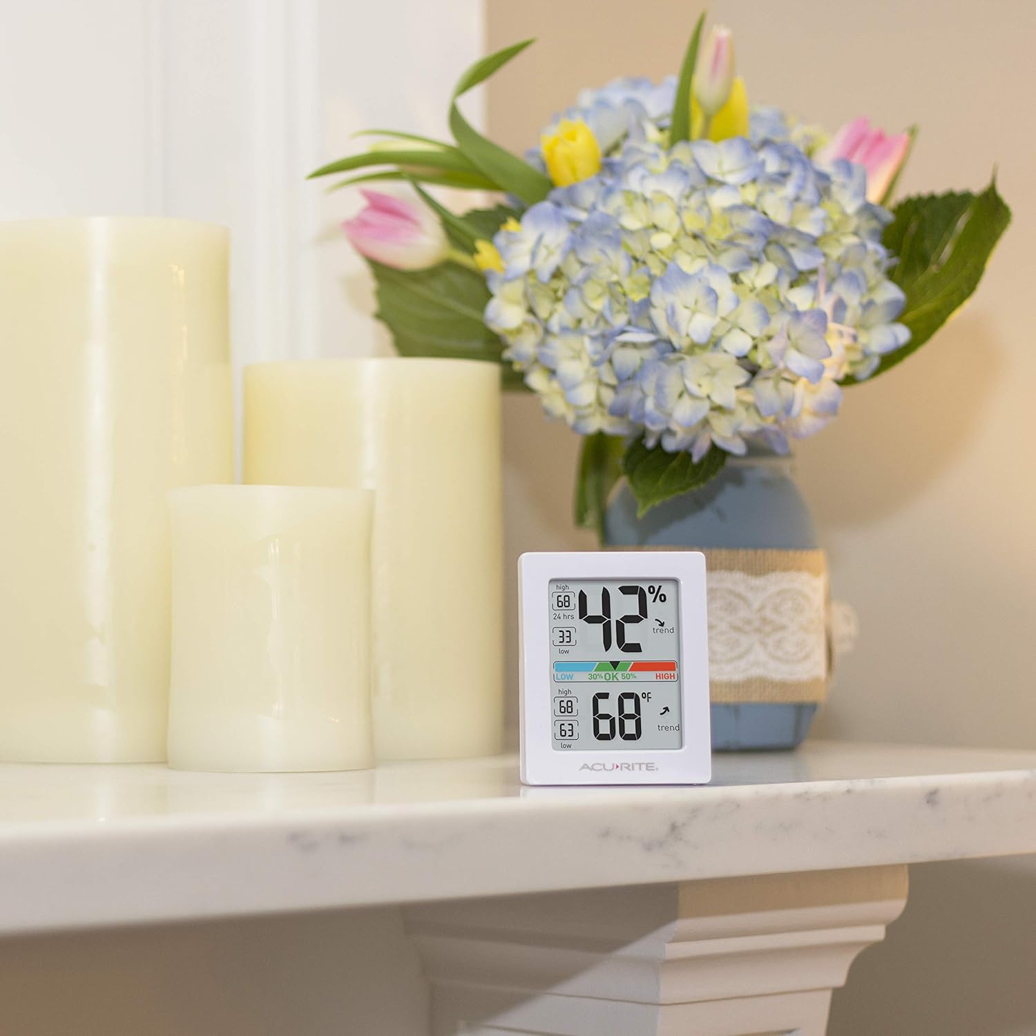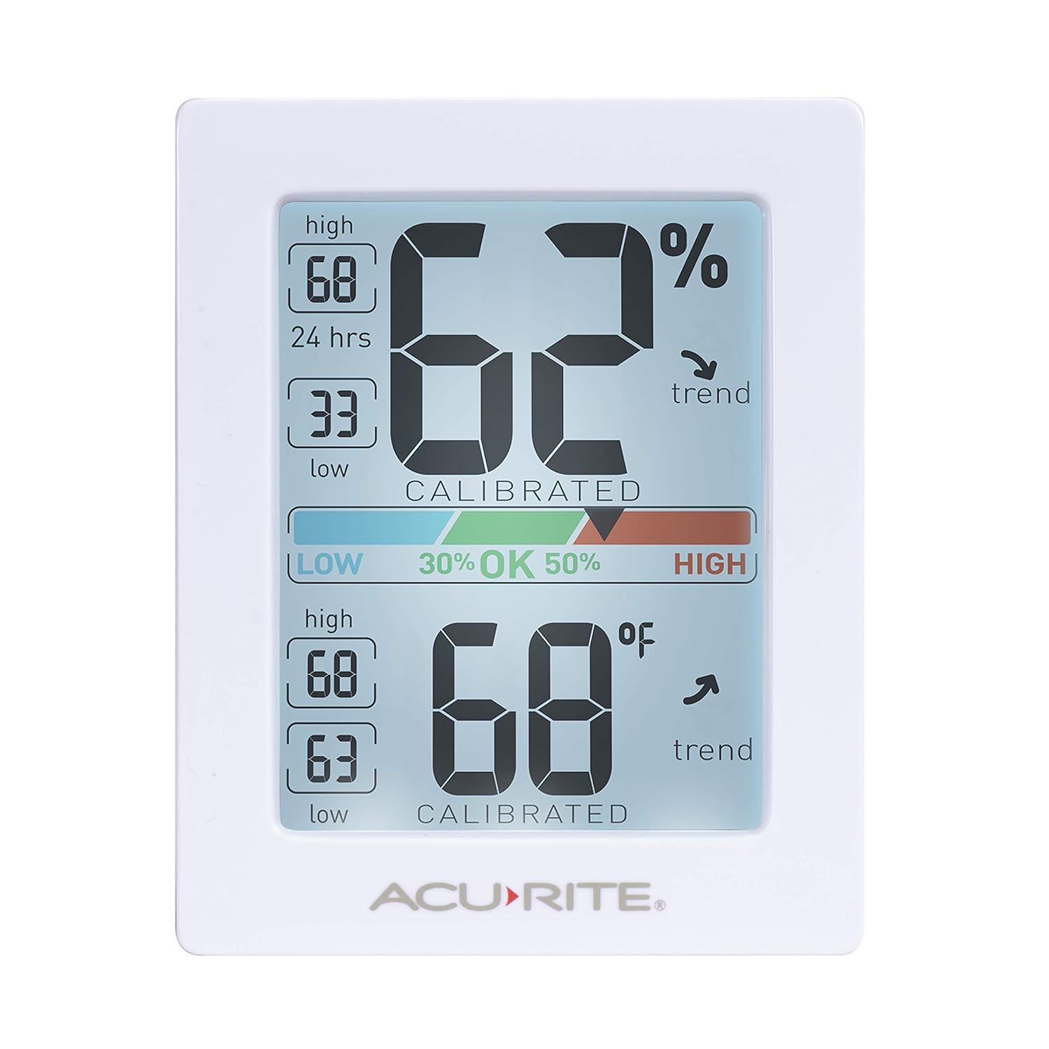 - AcuRite Humidity Meter Hygrometer and Indoor Digital Thermometer with Temperature Gauge and Humidity Gauge, Room Thermometer Comfort Scale, 3 x 2.5 Inches, White (01083M)