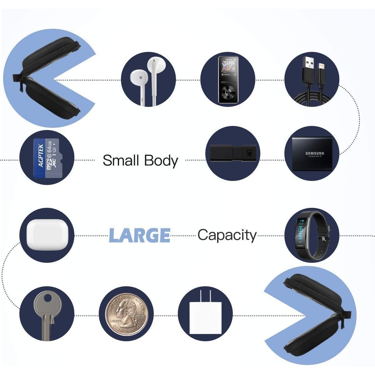 - Scratch-resistant and Shockproof Interior: Interior secure-fit elastic strap holds your device in place and helps reduce the impact of bumps and drops. Dual buffer layer and soft cloth lined interior to safeguard your earphones/mp3 player from scratches and damage.Keep them well organized.
