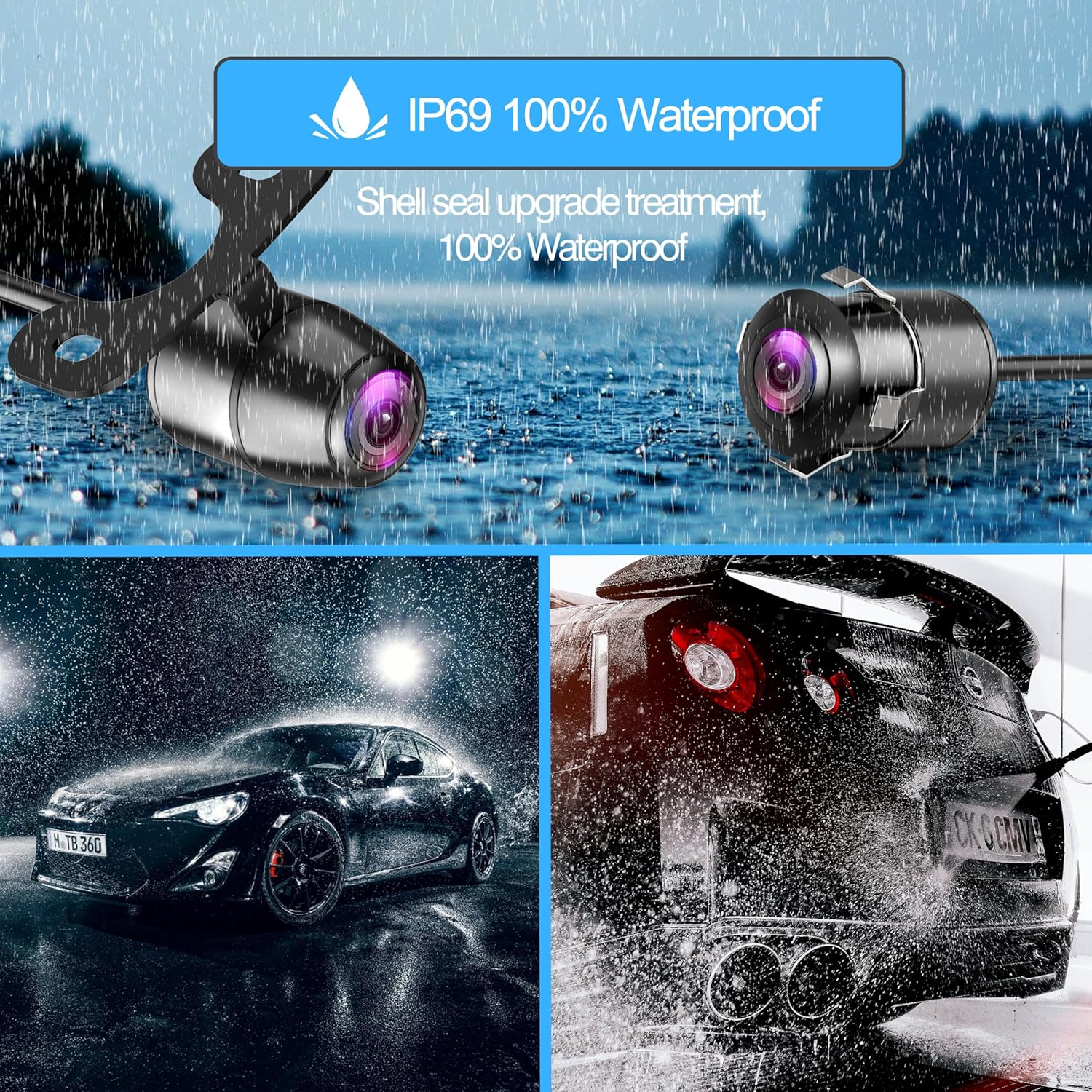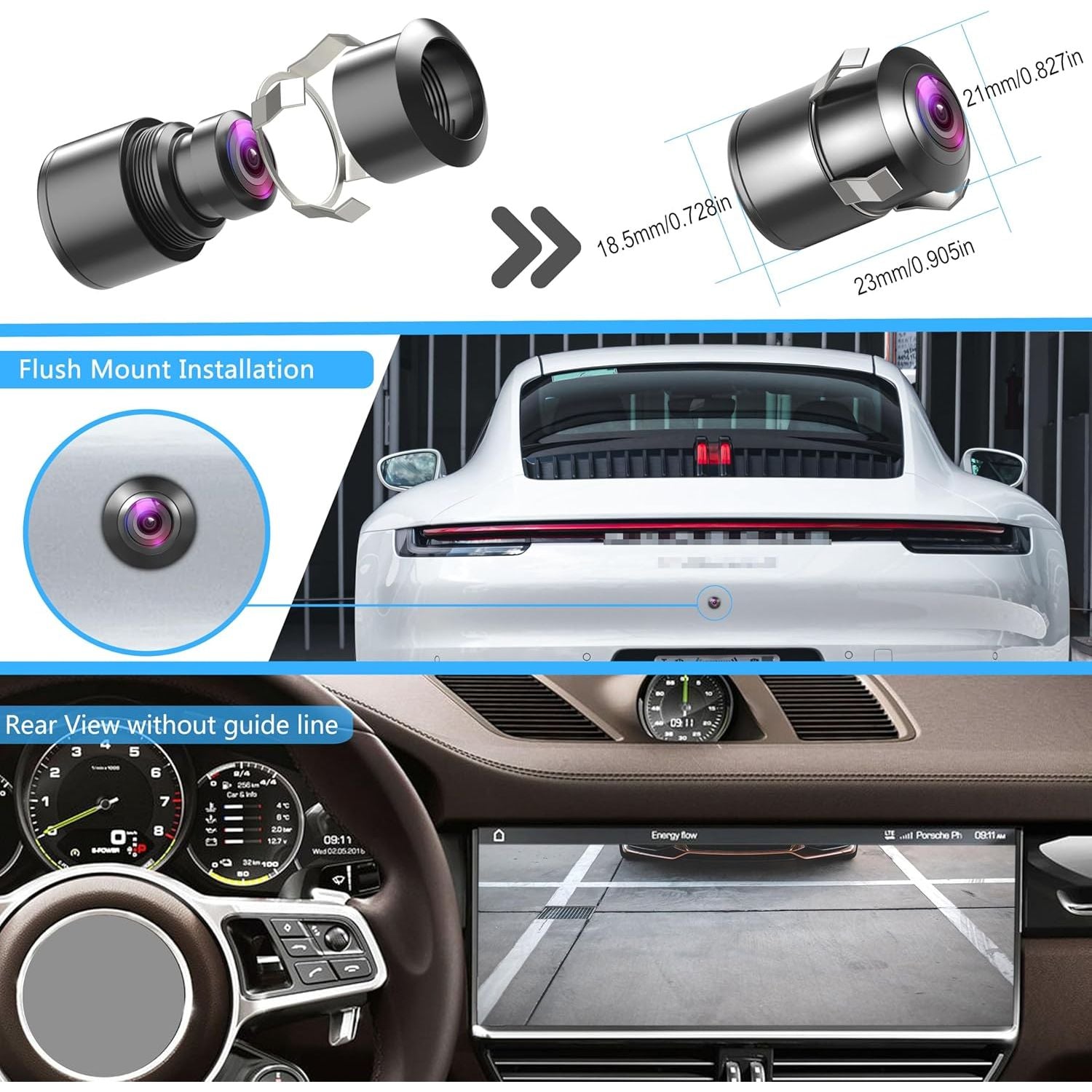- 【Metal Housing, Remarkable Waterproof IP69】The backup camera for car features a robust metal housing and achieves an IP69K waterproof rating. Designed with fully sealed glue-filling technology. You can confidently use this camera without worrying about moisture, fog, or dust ingress