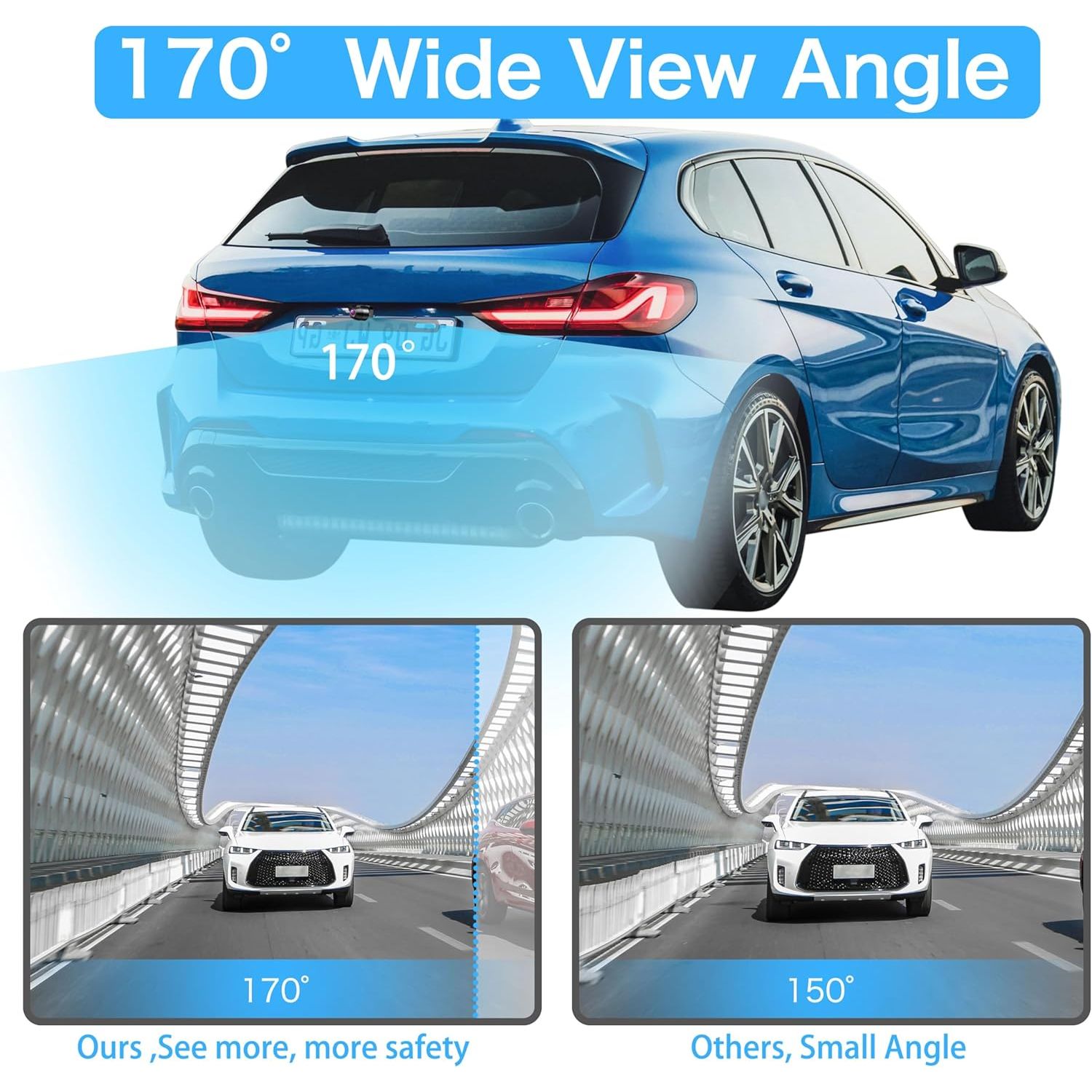 - 【170° Wide Angle Optical Glass HD Lens】The lens is the core component of a rearview camera system. The HD lens in the wide-angle backup camera stands out from standard lenses in both design and functionality. Its larger aperture and technologically advanced features, combined with high-transmittance glass and a fish-eye aesthetic, directly enhance the camera’s wide-angle, maximum pixel output, and low-light performance