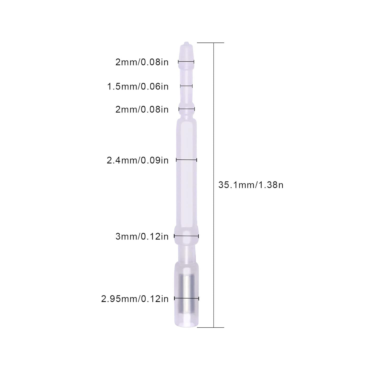 Specification: Color: as shown in the picture Material: plastic Product Size: 35.1mm/1.38inch Package details: 5 x bed leveling touch probe pin replacement Note: Due to manual measurement, the size and weight may have a certain error. Due to the difference between monitors, there may be a slight color difference.