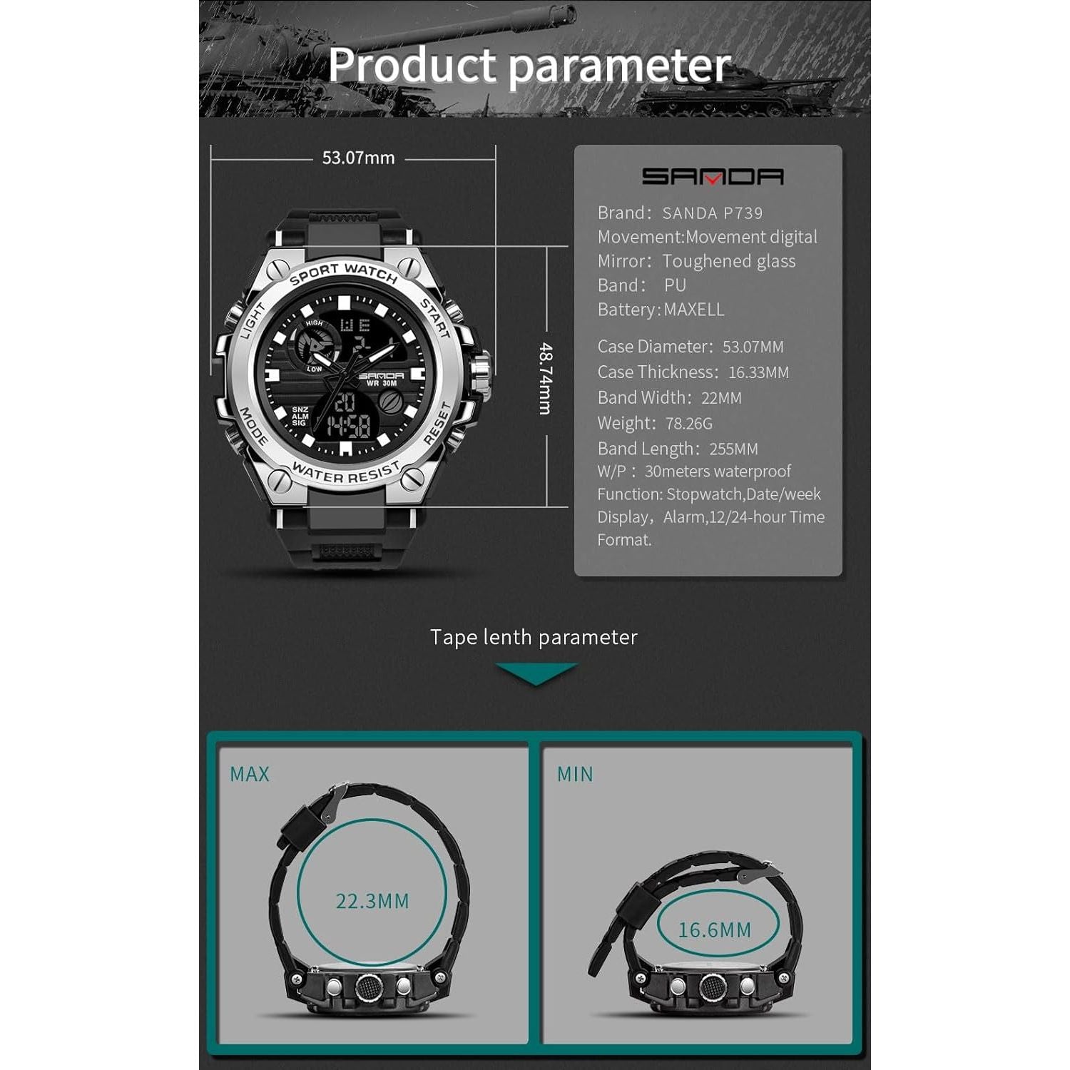 - Multifunction Watch: Stopwatch, alarm, LED backlight, calendar(date, week display), 12/24 hour time format, dual time, shockproof.
