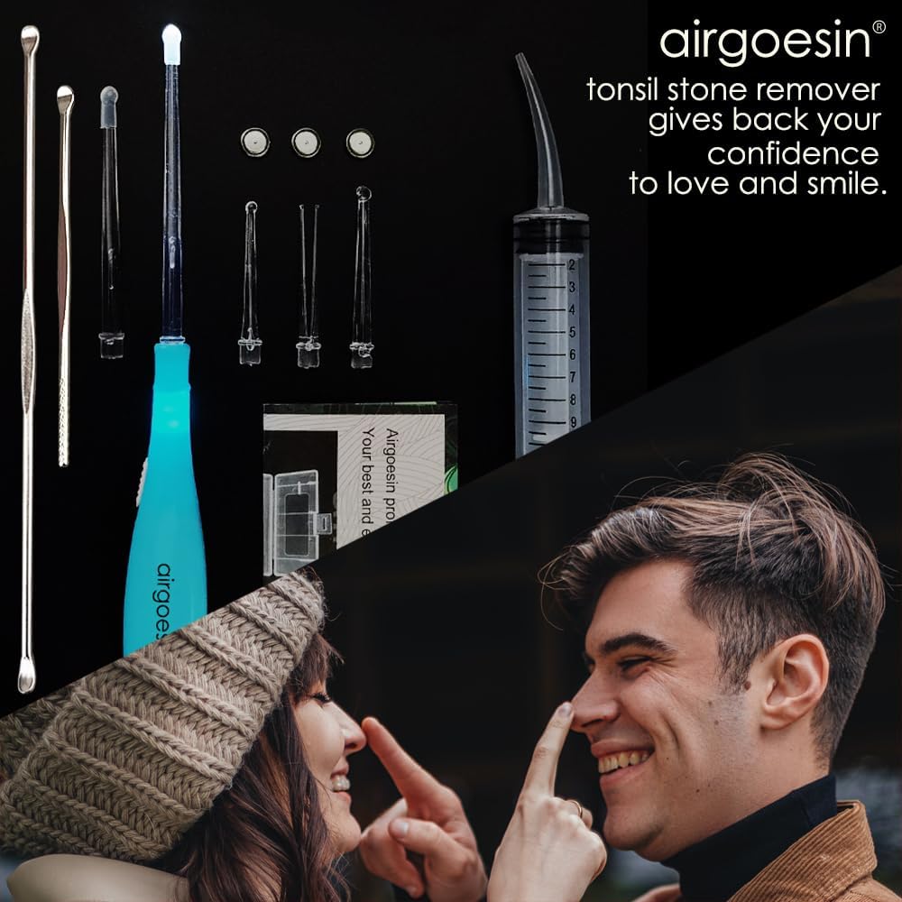 Airgoesin™ Upgraded Tonsil Stone Remover Tool, Blue, 5 Tips, Tonsillolith Pick Case + 1 Irrigator Fresh Breath Oral Rinse