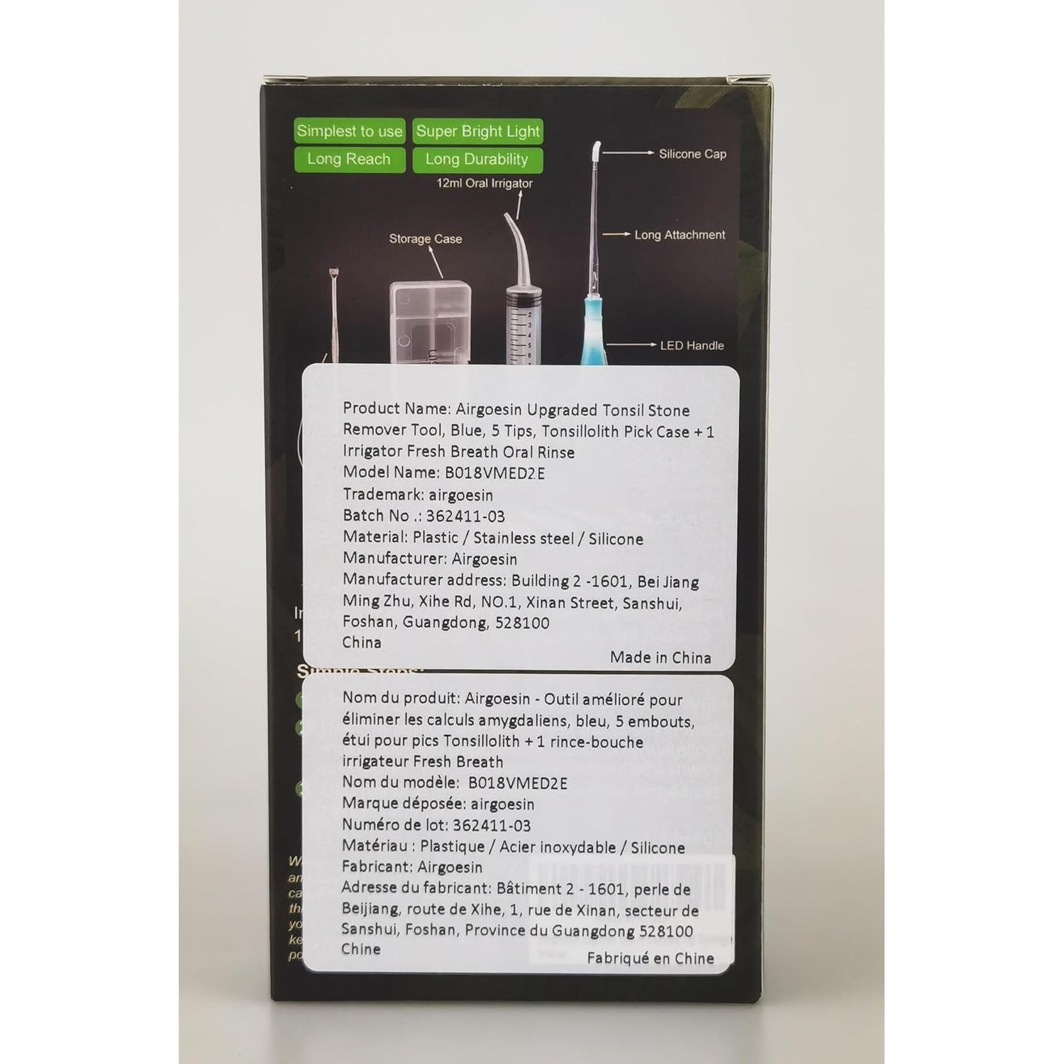 • Upgraded the total length from 5" to 6.75". The exclusive attachment with increased length to reach your tonsil stones deeper down the throat, and an extra silicone cap for a better touch feeling.