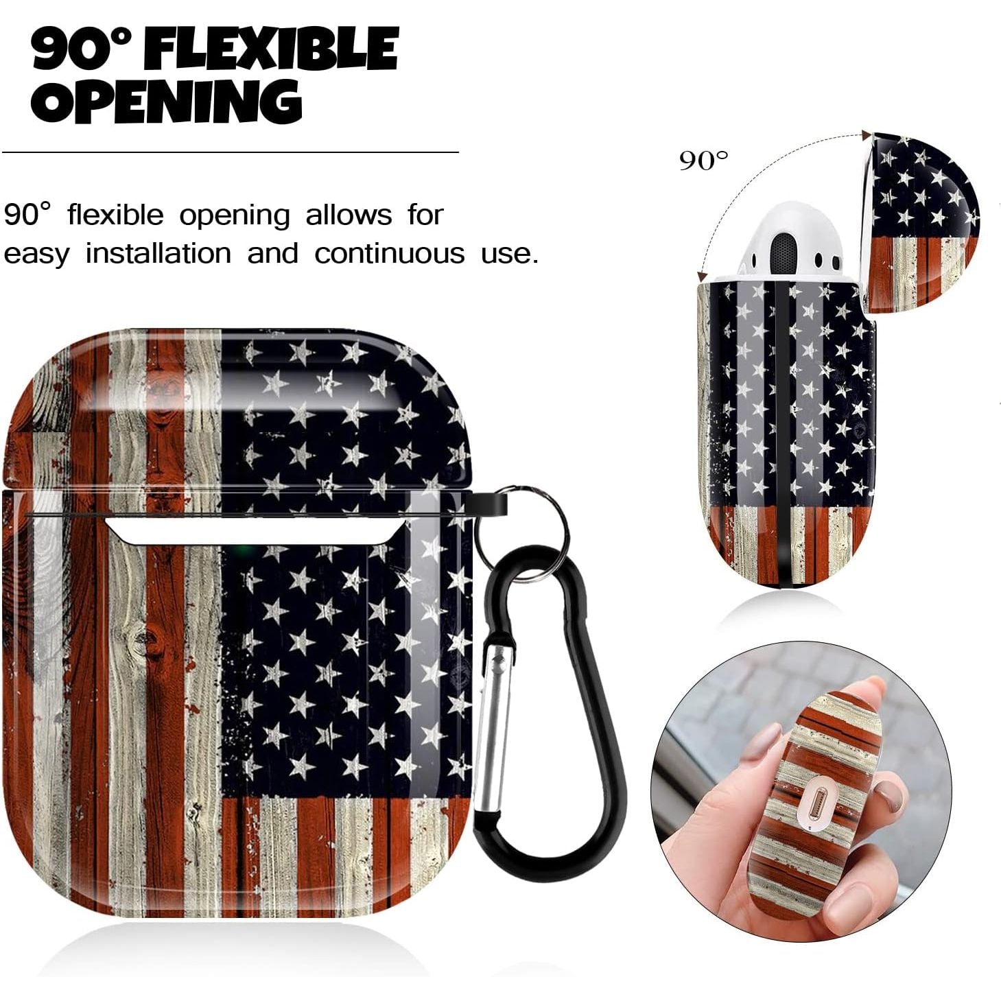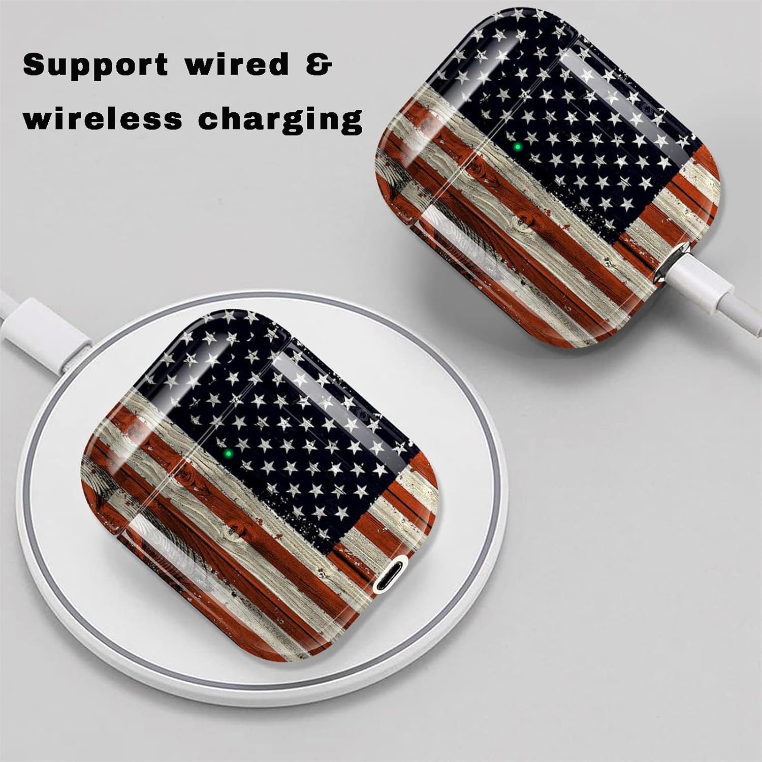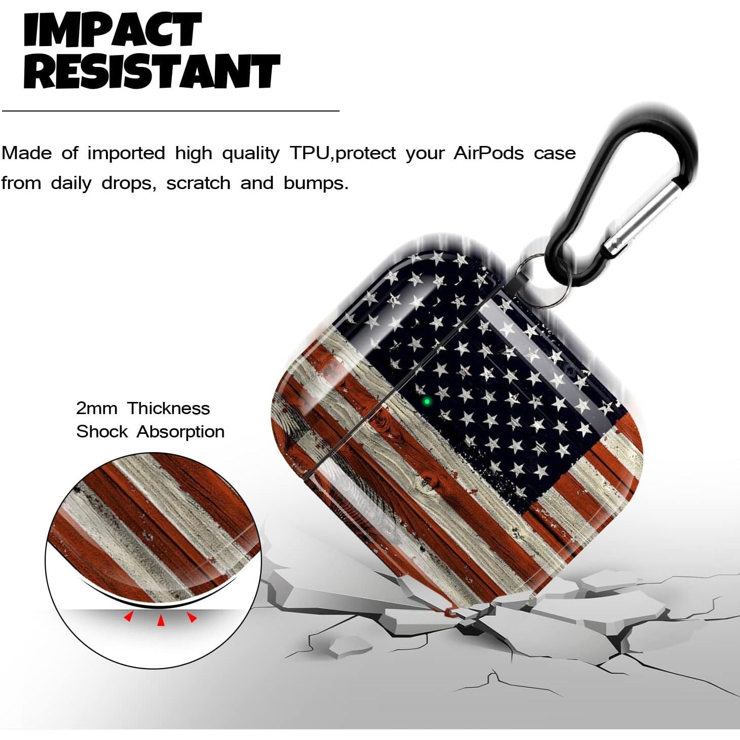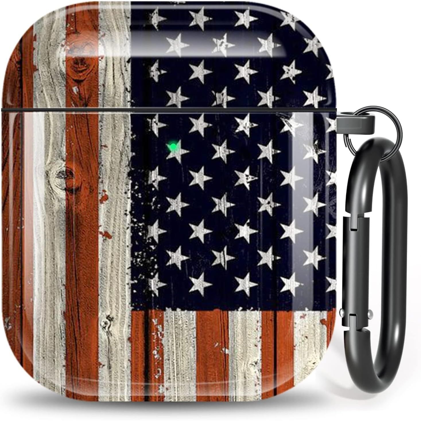 - AirPod Case Cover for AirPod 2/1, Shockproof Protective Skin with Keychain for Apple AirPods 2nd 1st Generation Charging Case, Front LED Visible, American Flag AirPod Case