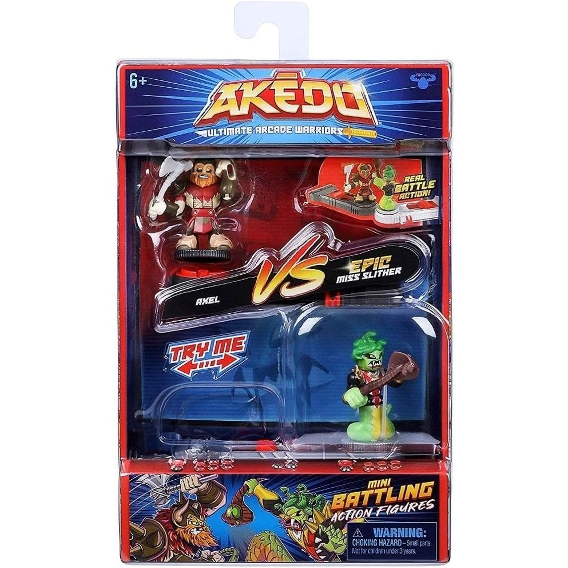 Enter the world of Akedo and the Ultimate Arcade Warriors! Mini Battling Action Figures with Next Level intensity! All the extreme moves of arcade fighting games has leapt off the screen and into your hands for some REAL battling action! Choose your Warrior, battle with fury and finish them with a Split Strike! - GAME OVER! Take on and challenge your friends as you battle to become the Ultimate Arcade Warrior. READY: Select your Warrior and place them onto your Battle Controller. FIGHT your opponent with speed and fury then watch them fall as you finish them with a ""SPLIT STRIKE""! The world of Akedo has over 38 epic Mini Battling Action Figure toys for boys to collect and fight with. There are so many awesome Warriors to find with different fighting styles plus different weapons. Search for Classic, Epic, Ultra Rare and Legendary Warriors. Hunt down the Limited Edition ""Glow-in-the-Dark"" Mythical Lightning Viking- Stormstrike! Keep collecting to build the ultimate team of Akedo Warriors. Start battling straight out of the box with the Akedo Ultimate Arcade Warriors Versus Pack. With everything you need to battle with your friends, the Versus Pack includes 2 Warriors (one of which is an ""Epic"" Warrior) and 2 Battle Controllers. In this pack Tailwhip takes on Epic Warrior White Wraith! Will Tailwhip whip up a victory or will White Wraith strike white fear in his opponent? Use the number slide on your Battle Controller to keep score. There are six Akedo Versus Packs to collect, each with an awesome grudge match waiting to occur! Will your Warrior be on the winning team and become a Legend of Akedo?
