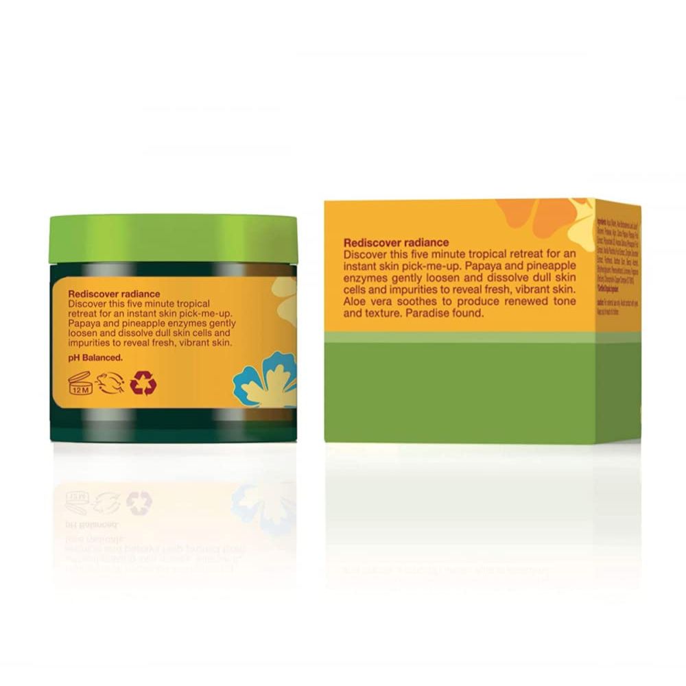 - Made with a plant-based blend of botanical ingredients like pore-refining pineapple, skin-brightening papaya and gentle buffing granules