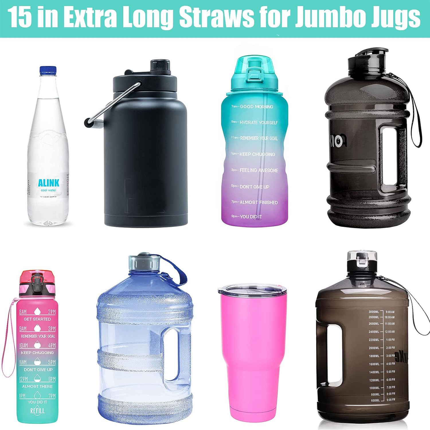 - SUPER LONG DESIGN - 15 inches length will fit most large jugs, from 1 gallon, 100 oz, 75 oz to 32 oz water bottles and no worry for straws falling in