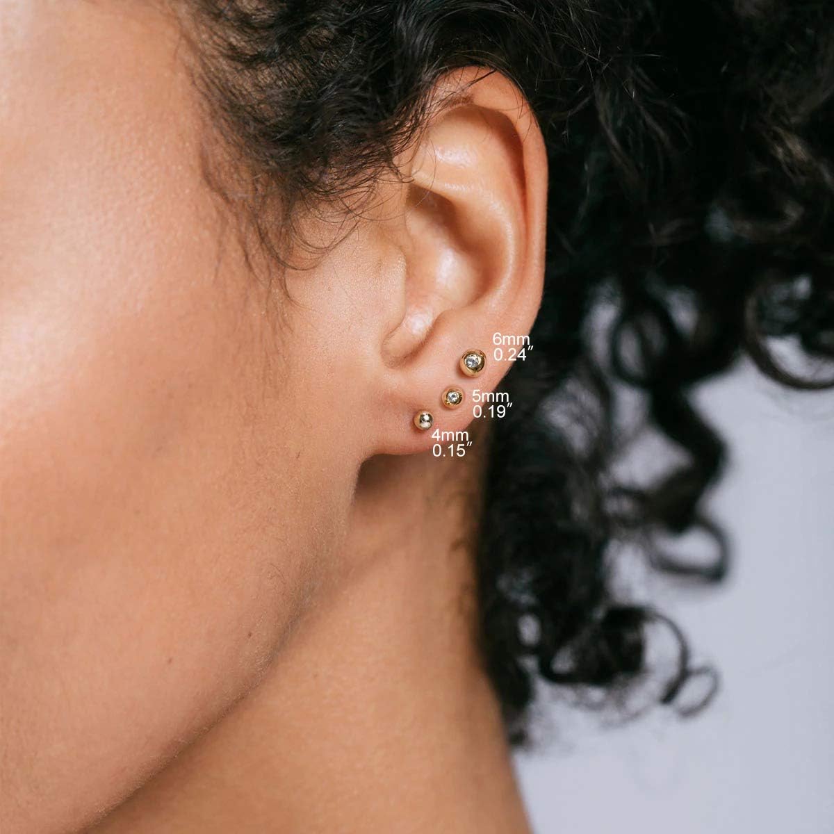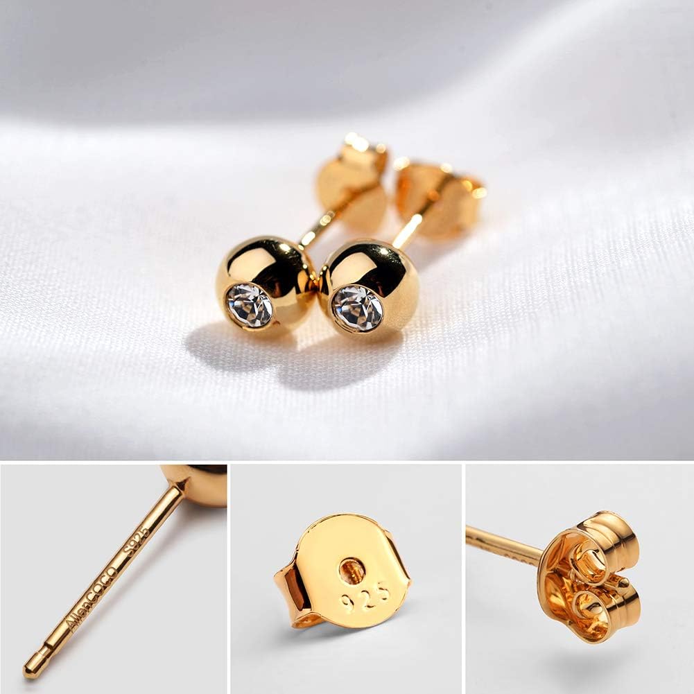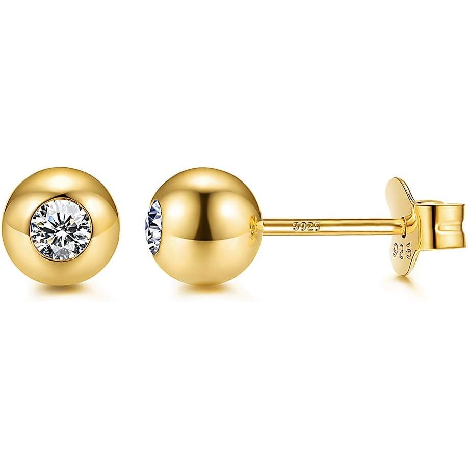 - AllenCOCO Gold Ball Stud Earrings for Women, Hypoallergenic S925 Sterling Silver Cubic Zirconia Stud Earrings Dainty Gold Ball Earrings for Women Sensitive Ears Gifts 6mm
