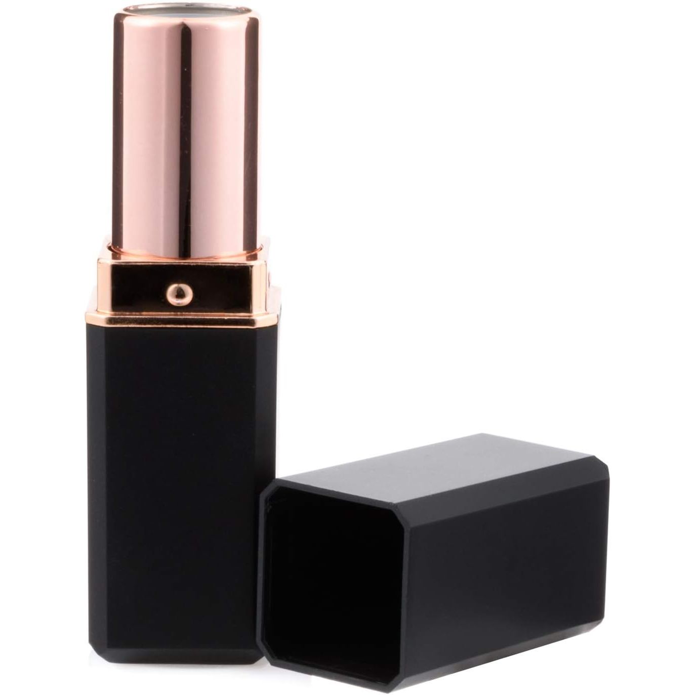 - Black plastic body and square lid cap, It's fashionable, creative plastic lipstick tubes.