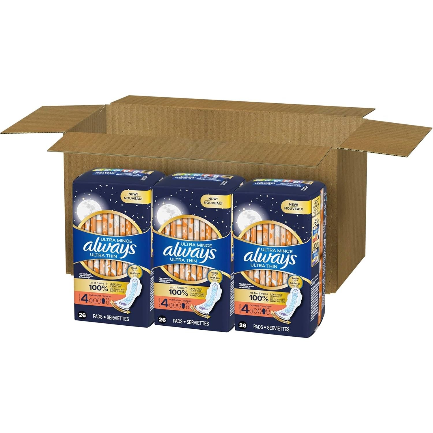 - Always Ultra Thin Overnight Pads with Wings, Size 4, Overnight, 78 Count (3 Packs of 26)