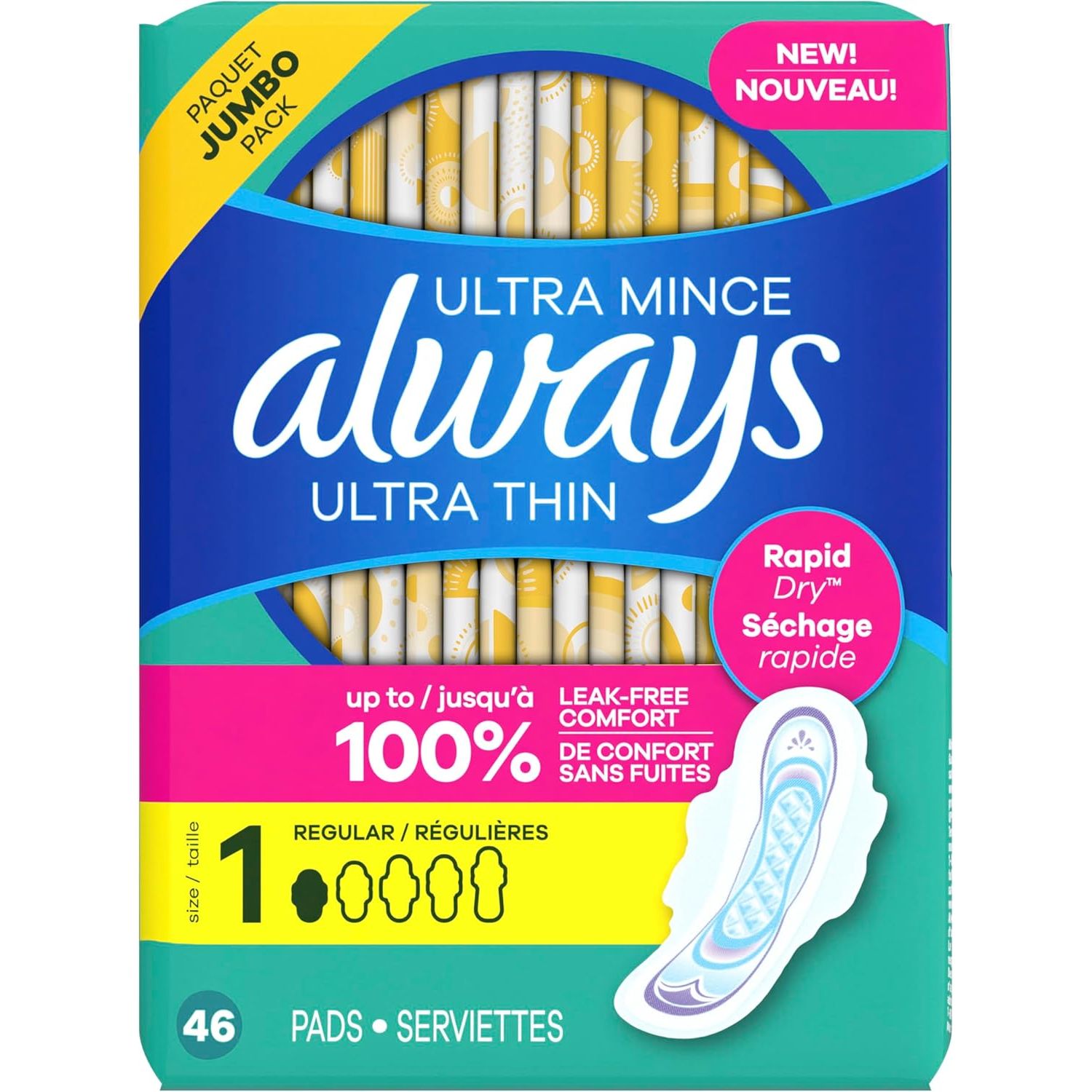 - Always Ultra Thin Pads with Wings, Size 1, Regular, 46 Count