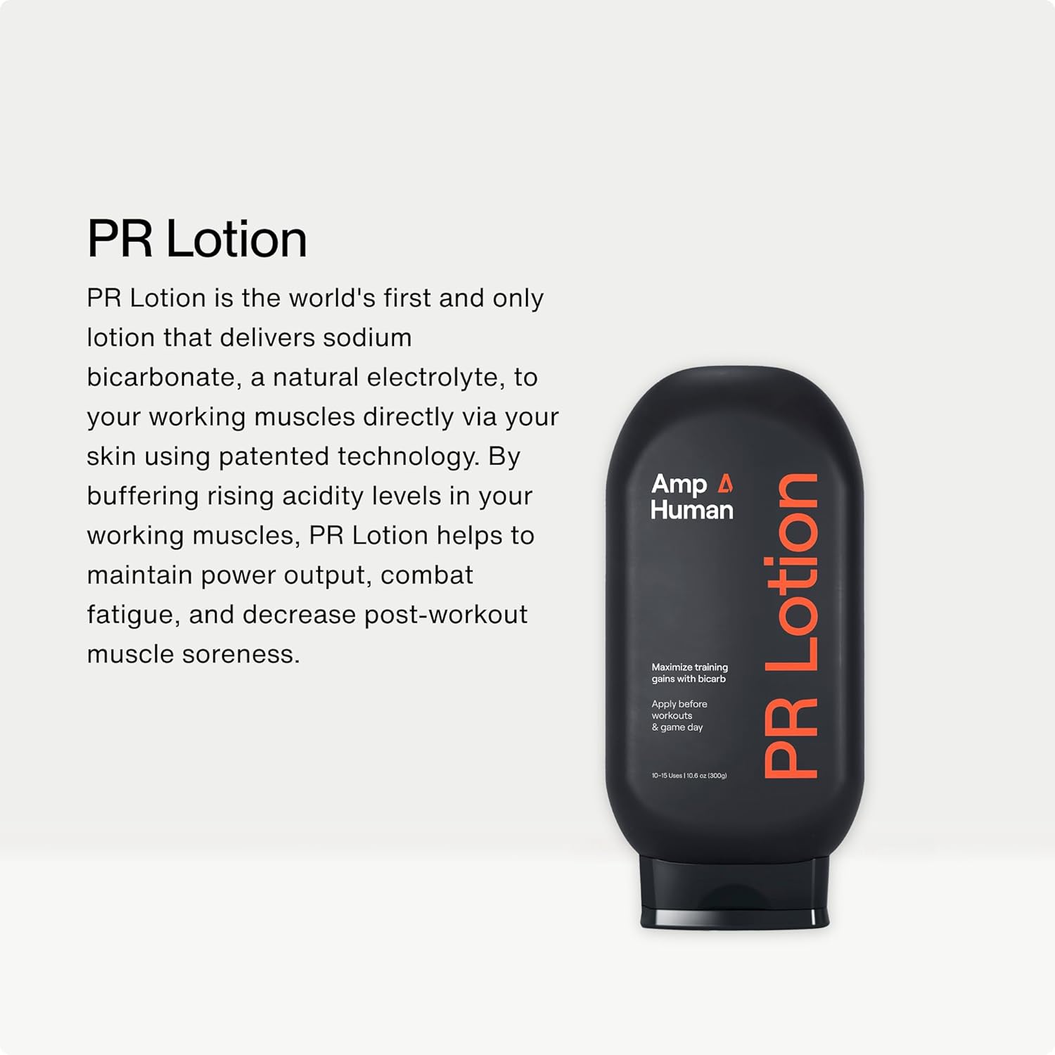 - Patented Technology - PR Lotion is the world's 1st & only lotion that delivers the natural electrolyte sodium bicarbonate to your working muscles directly via your skin using patented technology developed by Amp Human.