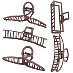 - What You Get: 5pieces metal claw clips in 1 set which are made of high-quality alloy, each one is durable and non-slip, will not harm your hair. Those fashion metal hair clips can hold your hair firmly, are not easy to damage, and will not fade