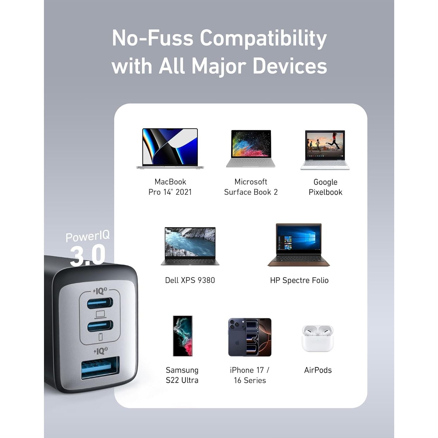 - Anker USB C Charger(Nano II 65W), PPS 3-Port Fast Compact Foldable Wall Charger for MacBook Pro/Air, iPad Pro, Galaxy S20, Dell XPS 13, Note 20/10+, iPhone 17/17 Pro, Steam Deck, and More