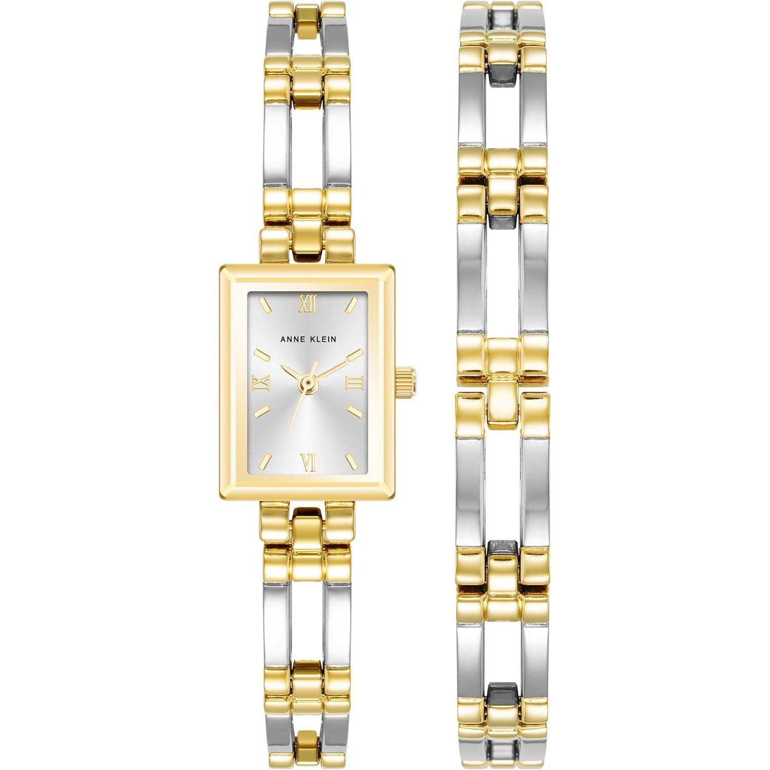 - Two-tone open link bracelet; jewelry clasp and two extenders