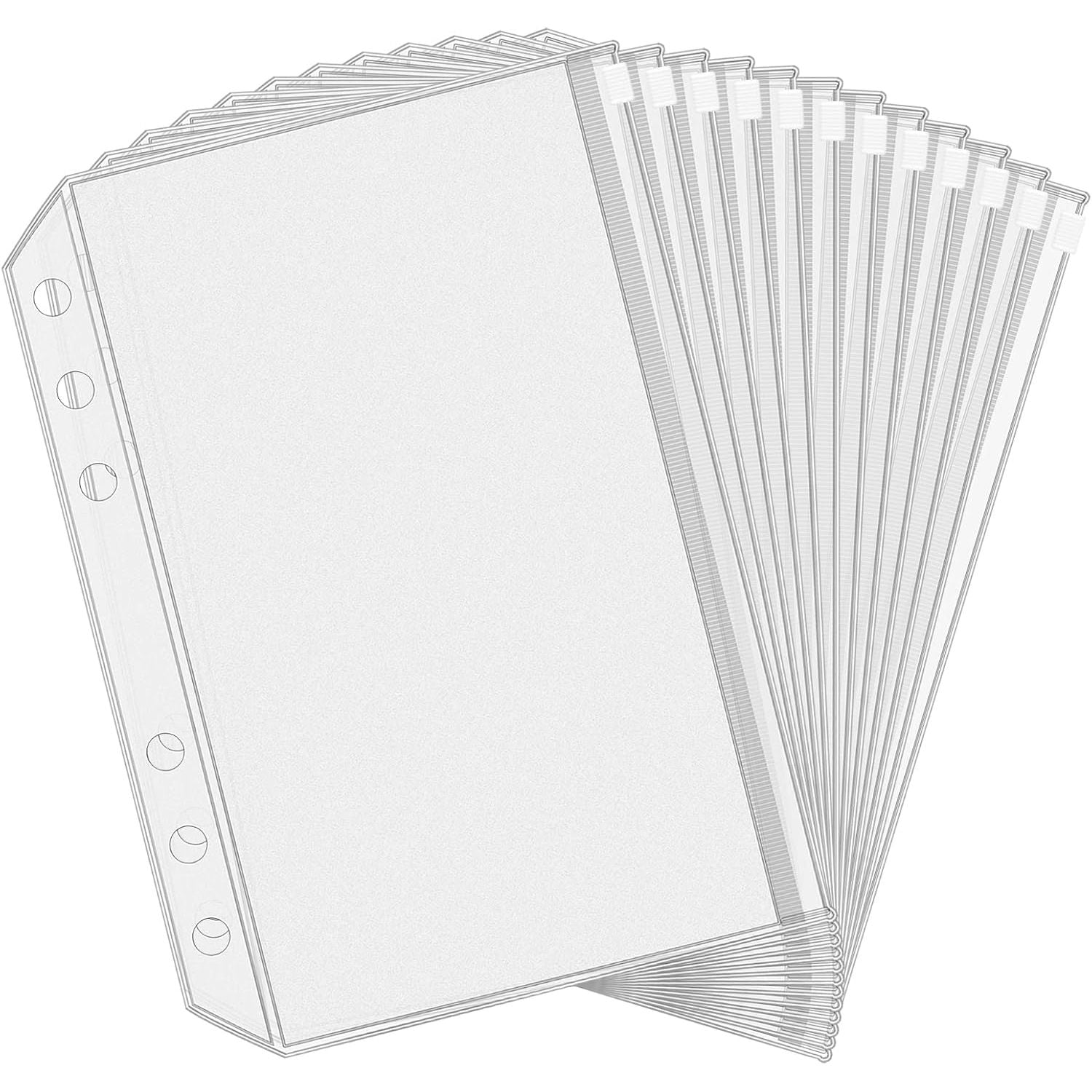 Antner 12pcs A6 Size Binder Pockets 6 Holes Budget Cash Envelopes for Budgeting, Clear Zipper Folders Loose Leaf Bags for A6 6-Ring Budget Binder, Waterproof PVC Document Pouch Filing Bags