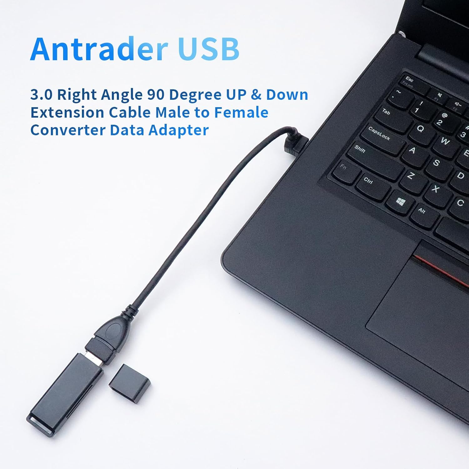 - Antrader USB 3.0 Right Angle 90 Degree UP & Down Extension Cable Male to Female Converter Data Adapter Cord 2 Pairs