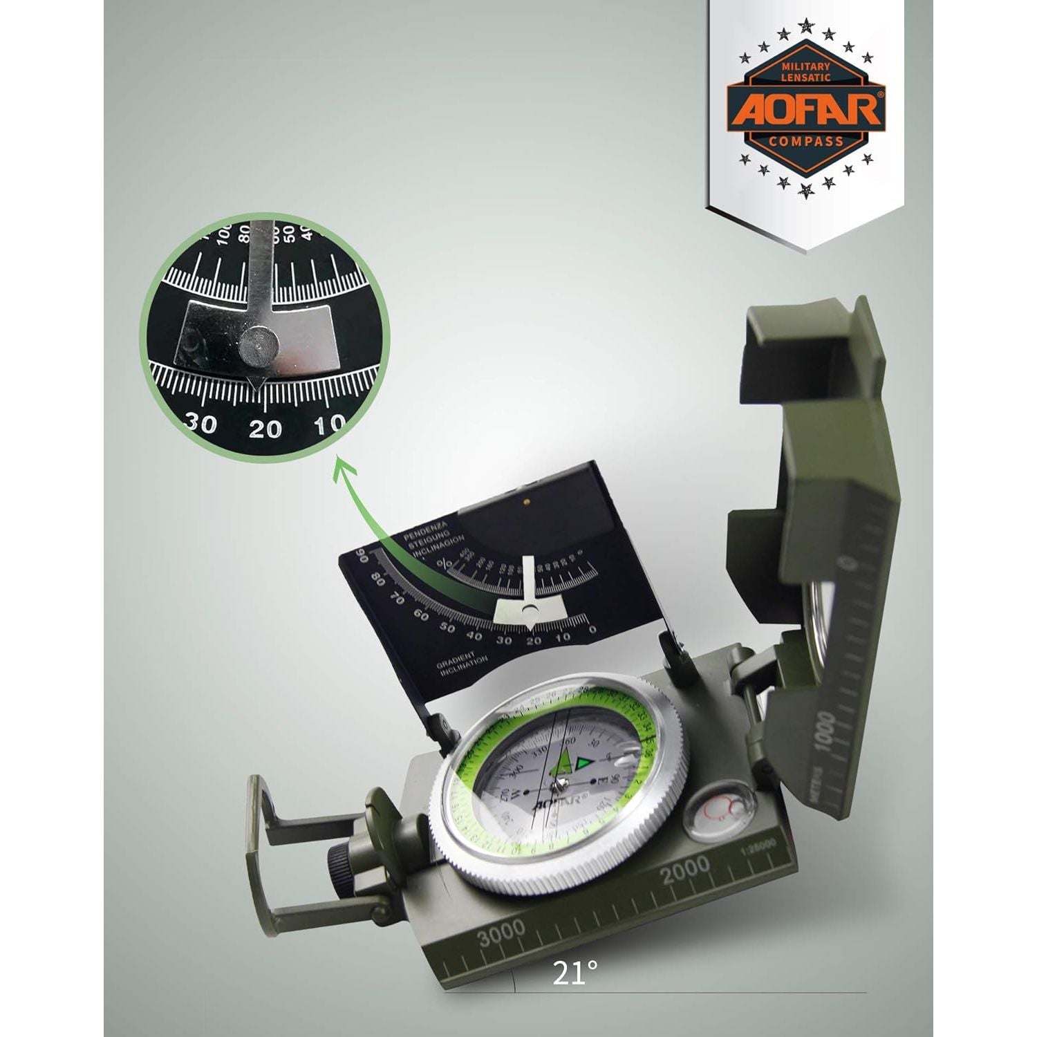 AOFAR AF-4074 Military Compass for Hiking,Lensatic Sighting Waterproof,Durable,Inclinometer for Camping,Boy Scount,Geology Activities Boating