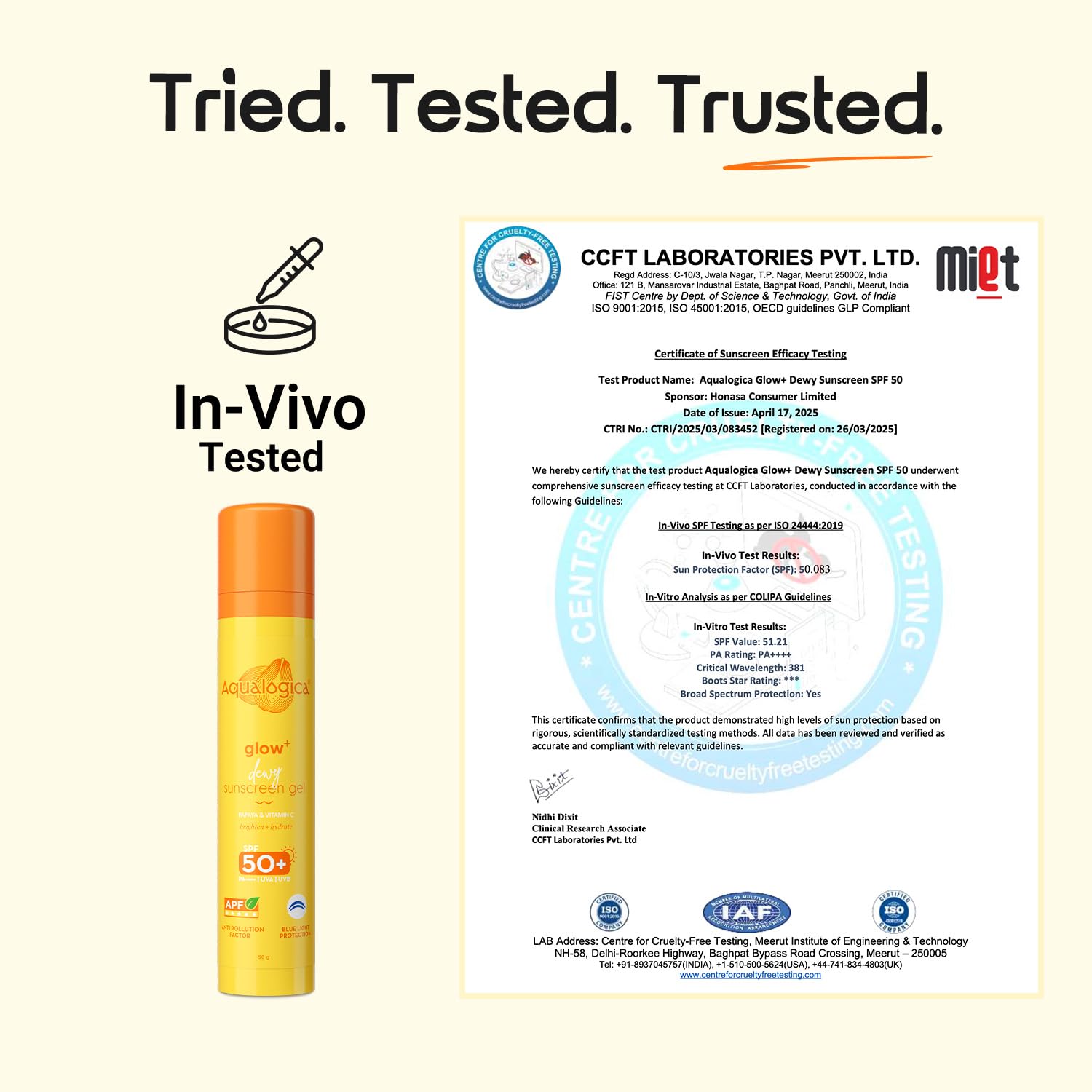 - Aqualogica Glow+ Dewy Face Sunscreen with SPF 50+ & PA+++ | Blue Light Protection & No White Cast | Helps Give Glowing Skin with Papaya & Vitamin C | 1.76 Oz/50g