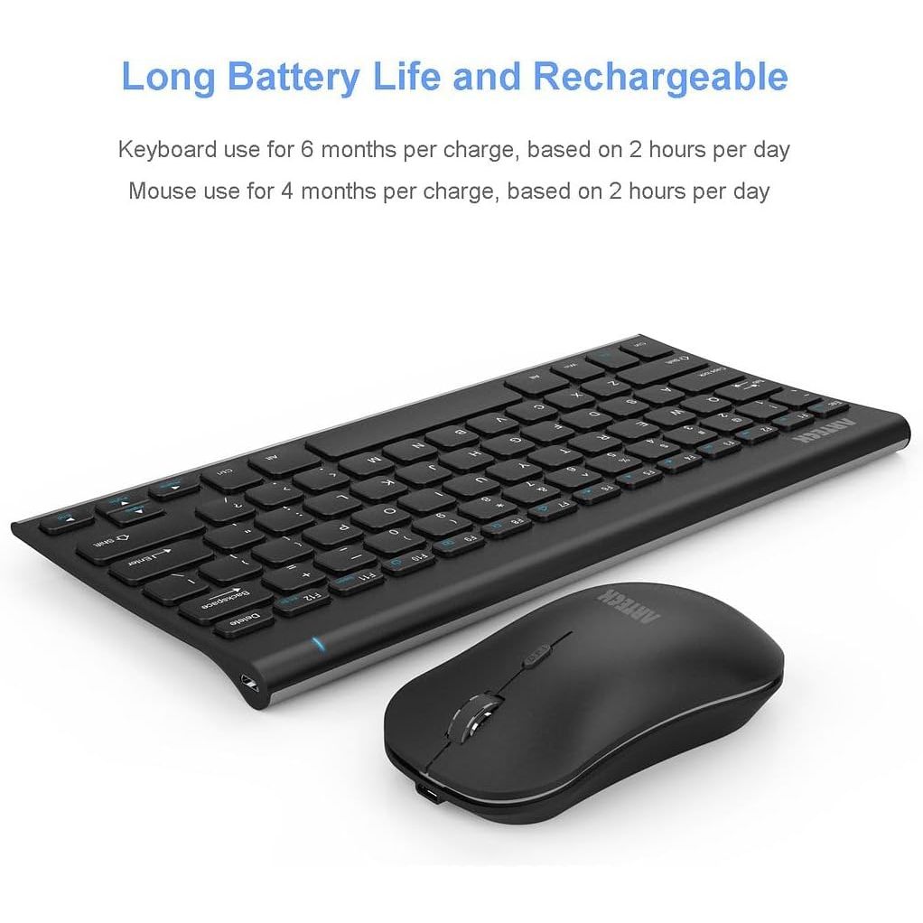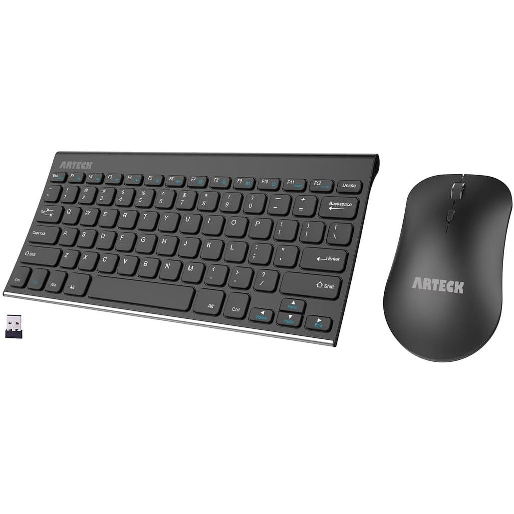 - Arteck 2.4G Wireless Keyboard and Mouse Combo Ultra Compact Slim Stainless Full Size Keyboard and Ergonomic Mouse for Computer/Desktop/PC/Laptop and Windows 10/8/7 Build in Rechargeable Battery
