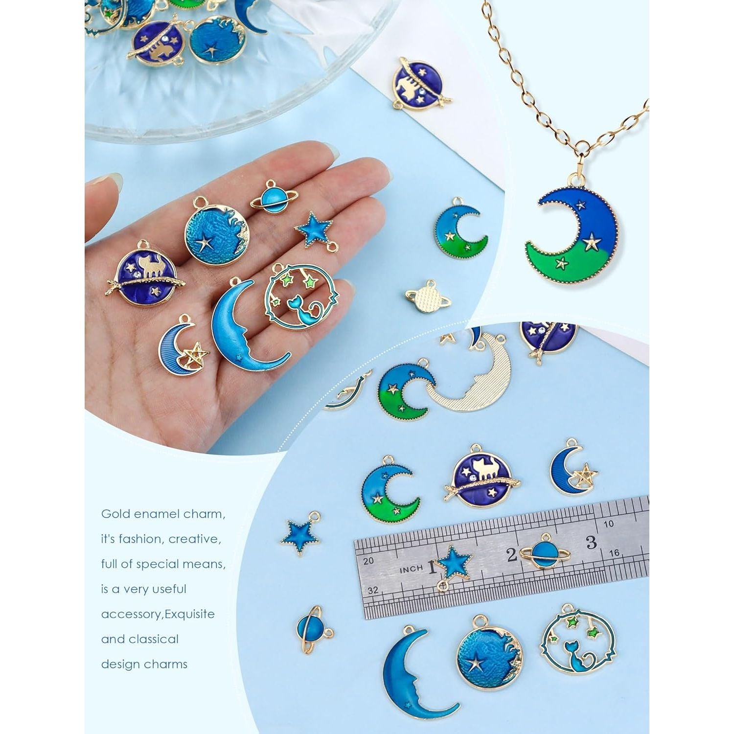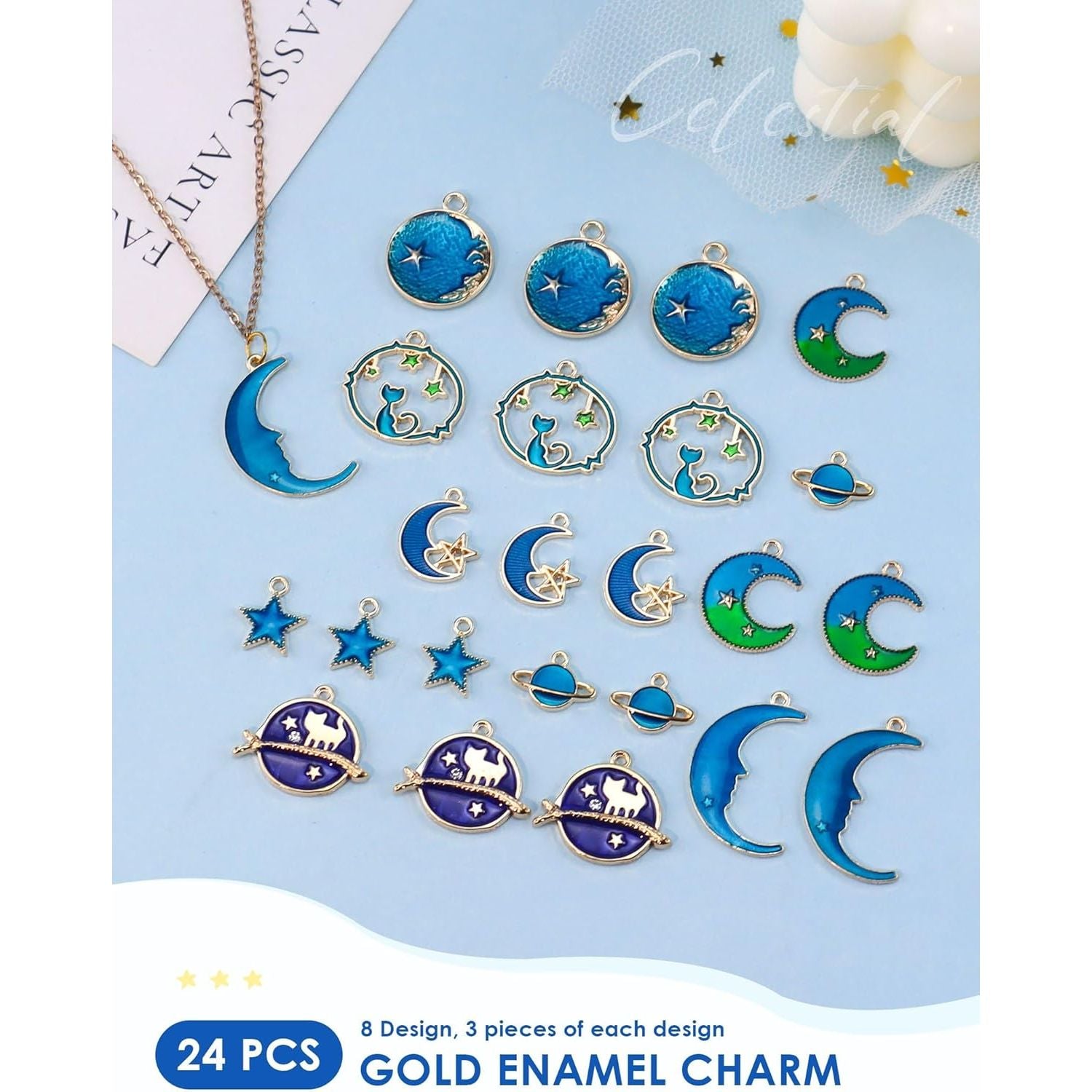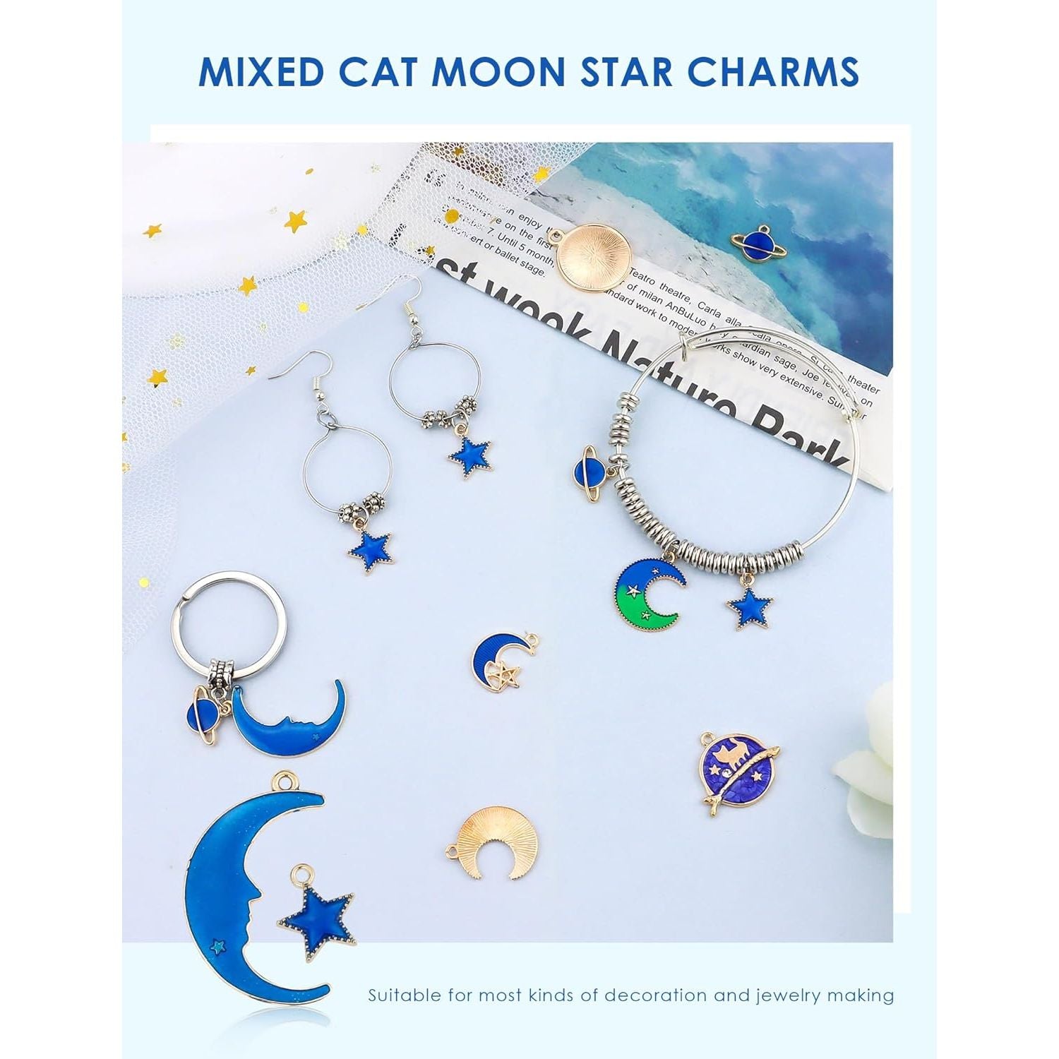 - Assorted Gold Plated Enamel Cat Moon Star Celestial Charm Pendant DIY for Earrings Necklace Bracelet Jewelry Making and Crafting