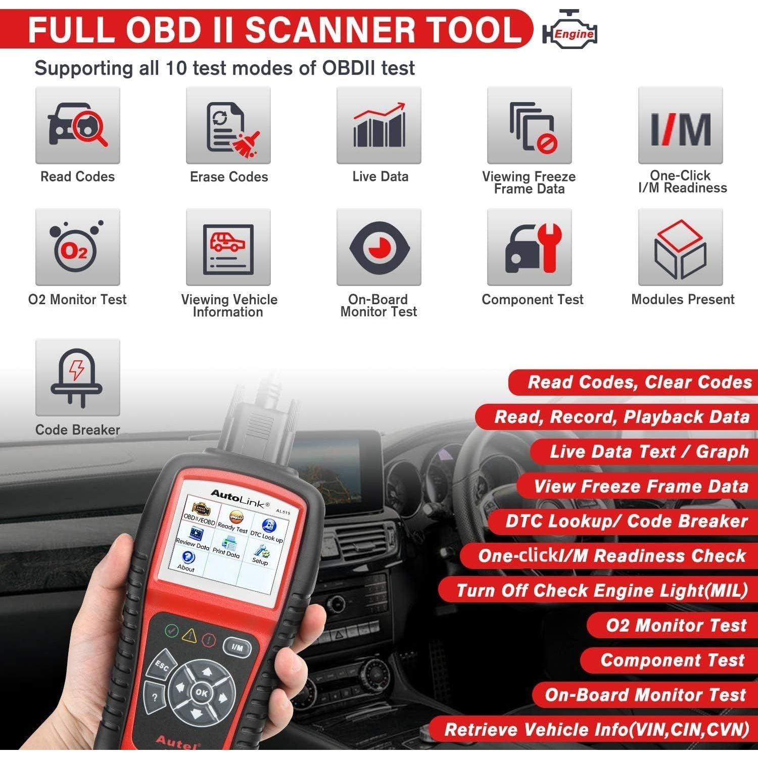 - 🏆【Autel Upgraded Ver. of AL319/ MS309】Autel develops more new features in AutoLink AL519 base on the old AL319, MS309. Instead of just reading and clearing codes, this AL519 OBD2 scanner can perform full OBDII functions (mode 1~10), and provide quick DTCs lookup and live data in text & graph. It can also retrieve generic(P0, P2, P3, and U0), manufacturer specific(P1, P3, and U1) codes and pending codes, car VIN#, turn off CEL, check I/M readiness status, locate bad parts like a O2 sensor, do evap leak test, etc.