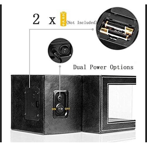 - 【DUAL POWER OPTIONS】The watch winder can be powered by either AC adapter(Voltage: 100-240V, 50/60HZ, 0.3A) or 2 AA batteries (Not included). You can use this at home and during travels more conveniently.