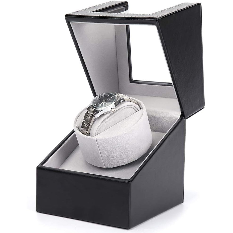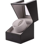 - Automatic Single Watch Winder, in Wood Shell and Black Leather/Carbon Fiber Leather, Japanese Motor