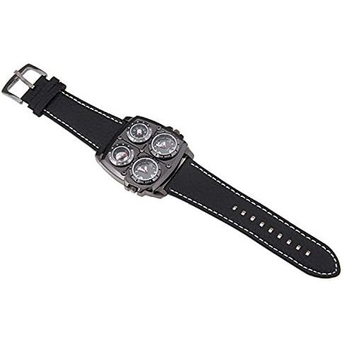 - Avaner Mens Punk Watch, Unique Big Face Dual Time Zone Wristwatch, Analog Quartz Leather Strap Sport Watches with Decorative Compass and Thermometer Dial