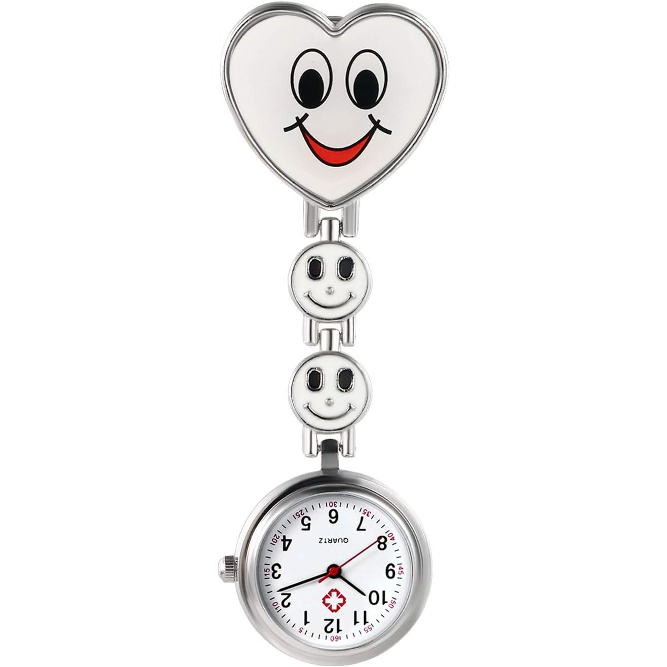 - Avaner Women's Clip on Fob Watch, Stainless Steel Quartz Nurse Watch, Smile Heart Face Lapel Watch, Hanging Pocket Watch with Second Hand