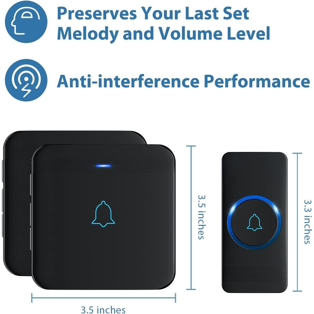 - AVANTEK Wireless Doorbell, D-3B Waterproof Door Chime Kit Operating at over 1300 Feet with 2 Plug-In Receivers, 52 Melodies, CD Quality Sound and LED Flash