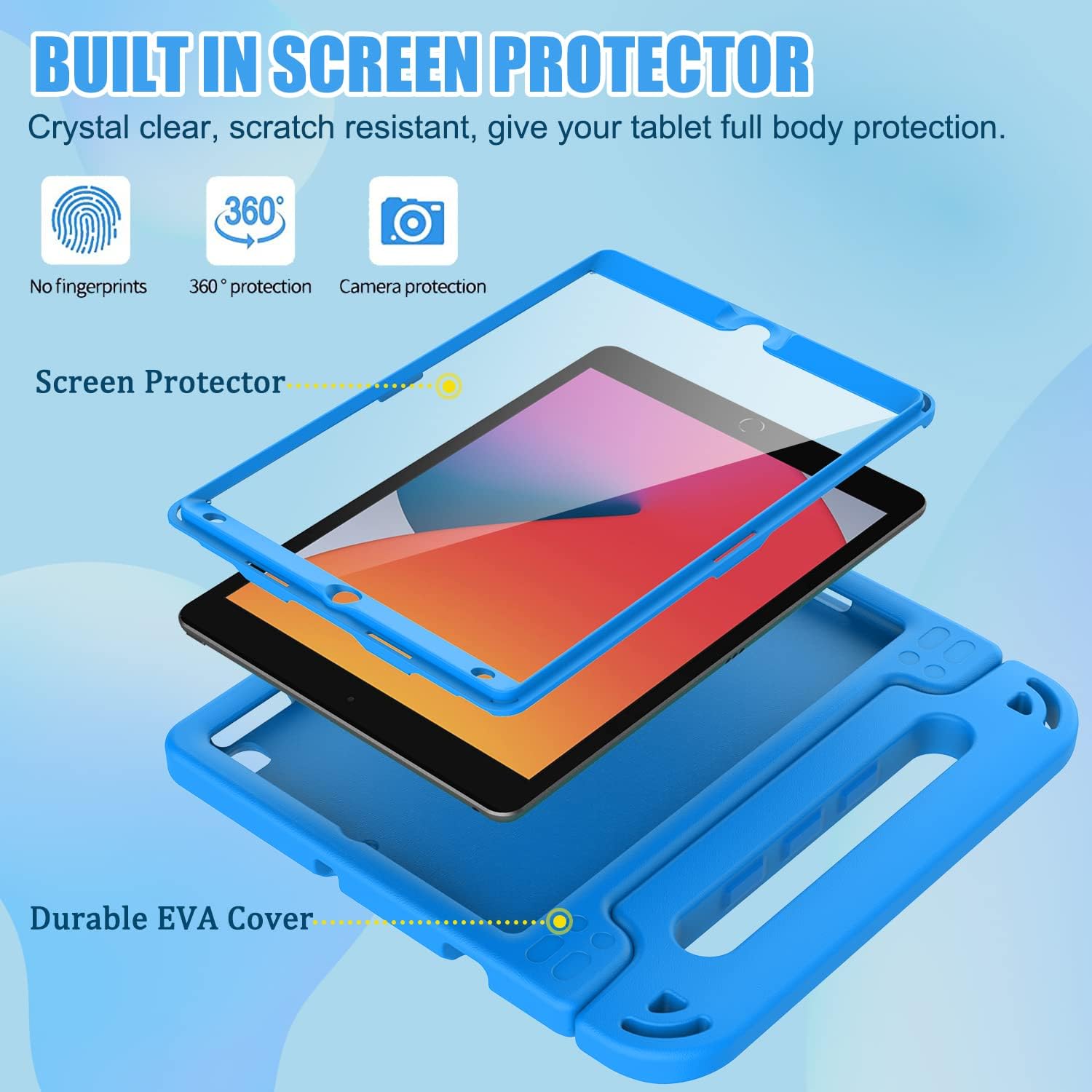 • ❥【With Built-in Screen Protector】: iPad 9/8/7th generation kids Case with Built-in Screen Protector give your iPad full Protection, clear and easy to clean.