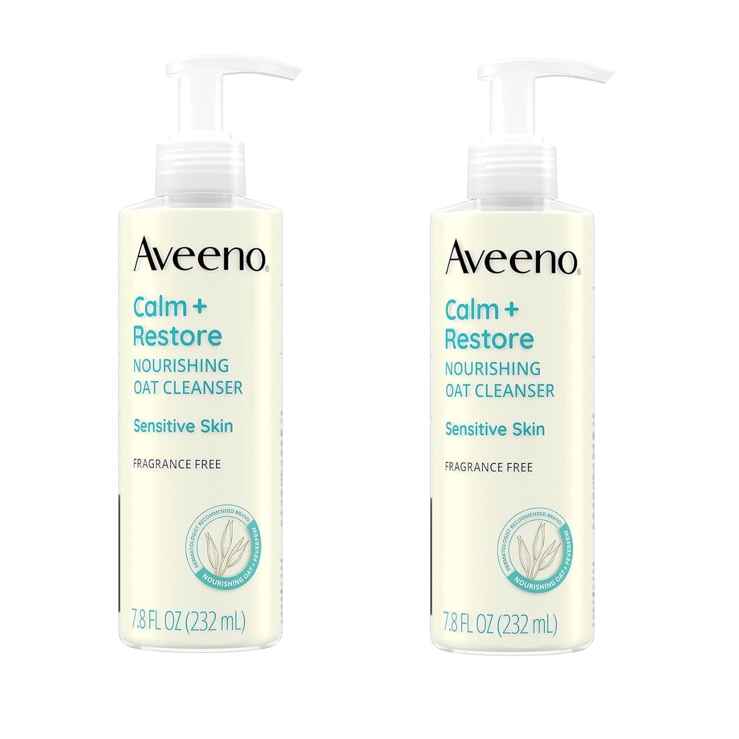 - Aveeno Calm + Restore Facial Cleanser for Sensitive Skin, Hydrating Gentle Milky Face Cleanser with Nourishing Oat and Feverfew, Hypoallergenic Formula, Fragrance Free, 7.8 fl oz