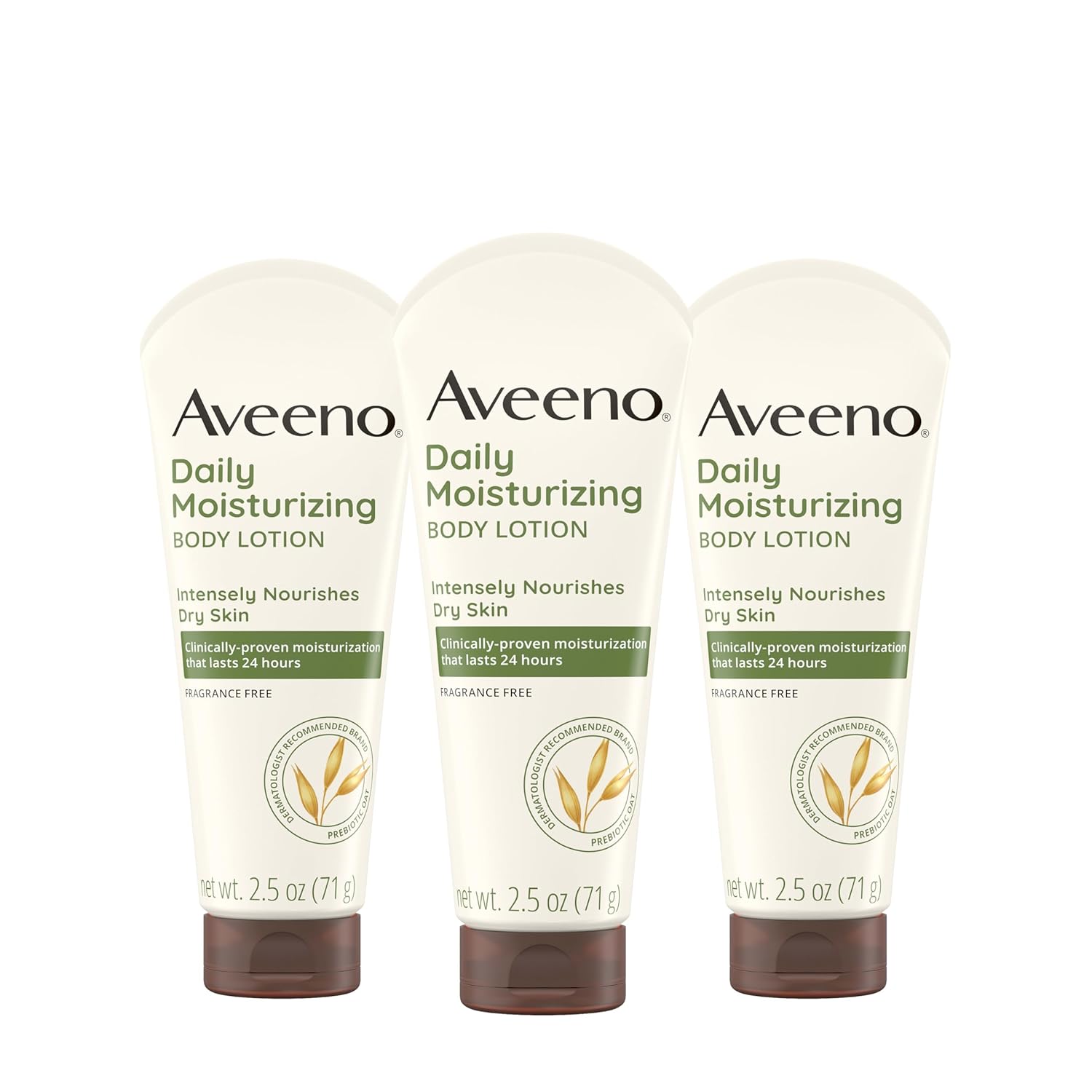 - Aveeno Daily Moisturizing Body Lotion with Soothing Oat and Rich Emollients, Fragrance-Free, 18 Fl Oz