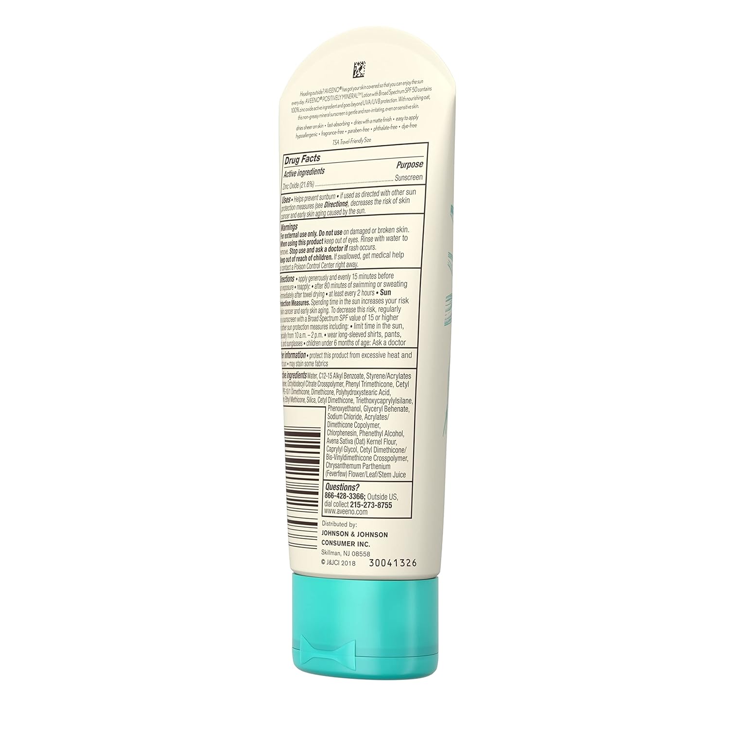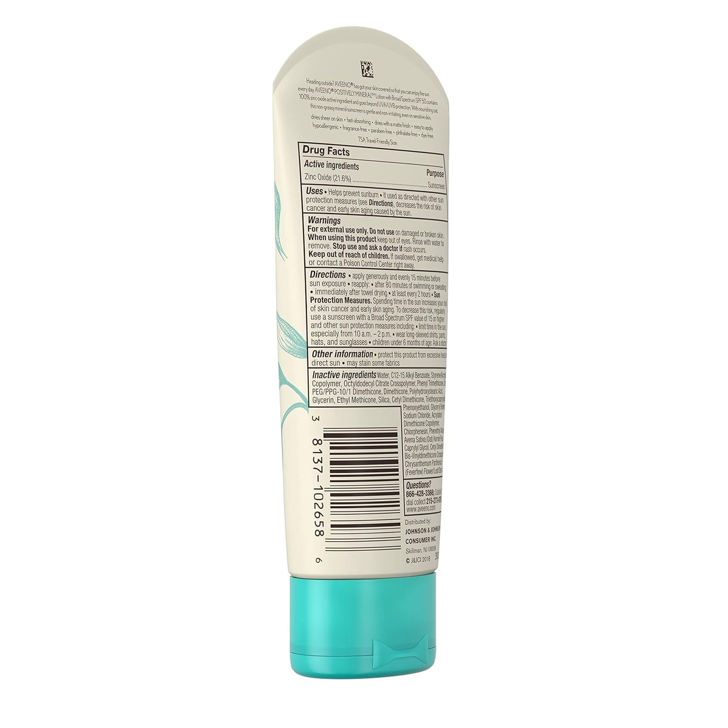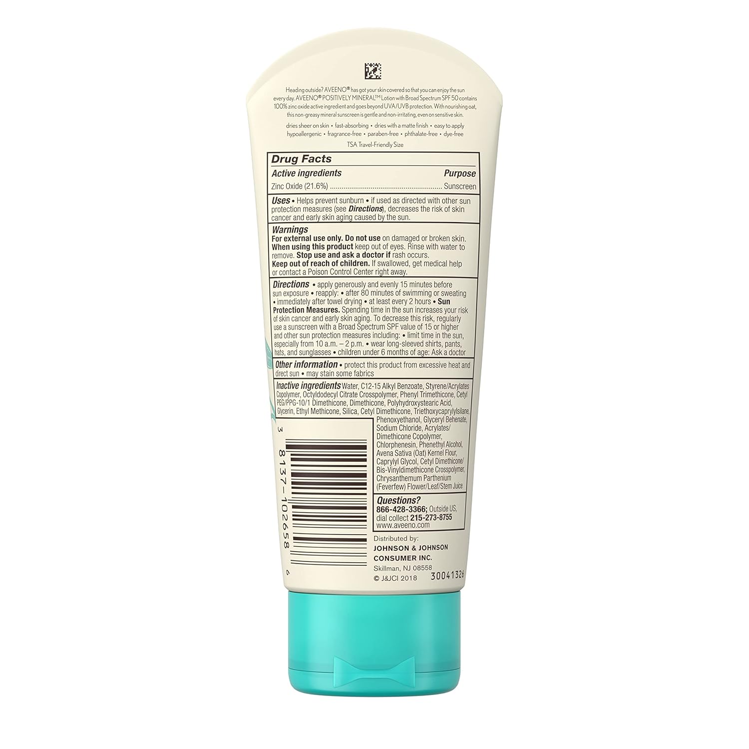- Aveeno Positively Mineral Sensitive Skin Daily Sunscreen Lotion with SPF 50 100 Zinc Oxide NonGreasy Sweat WaterResistant Sheer Sunscreen for Face Body TravelSize, Unscented, 3 Fl Oz