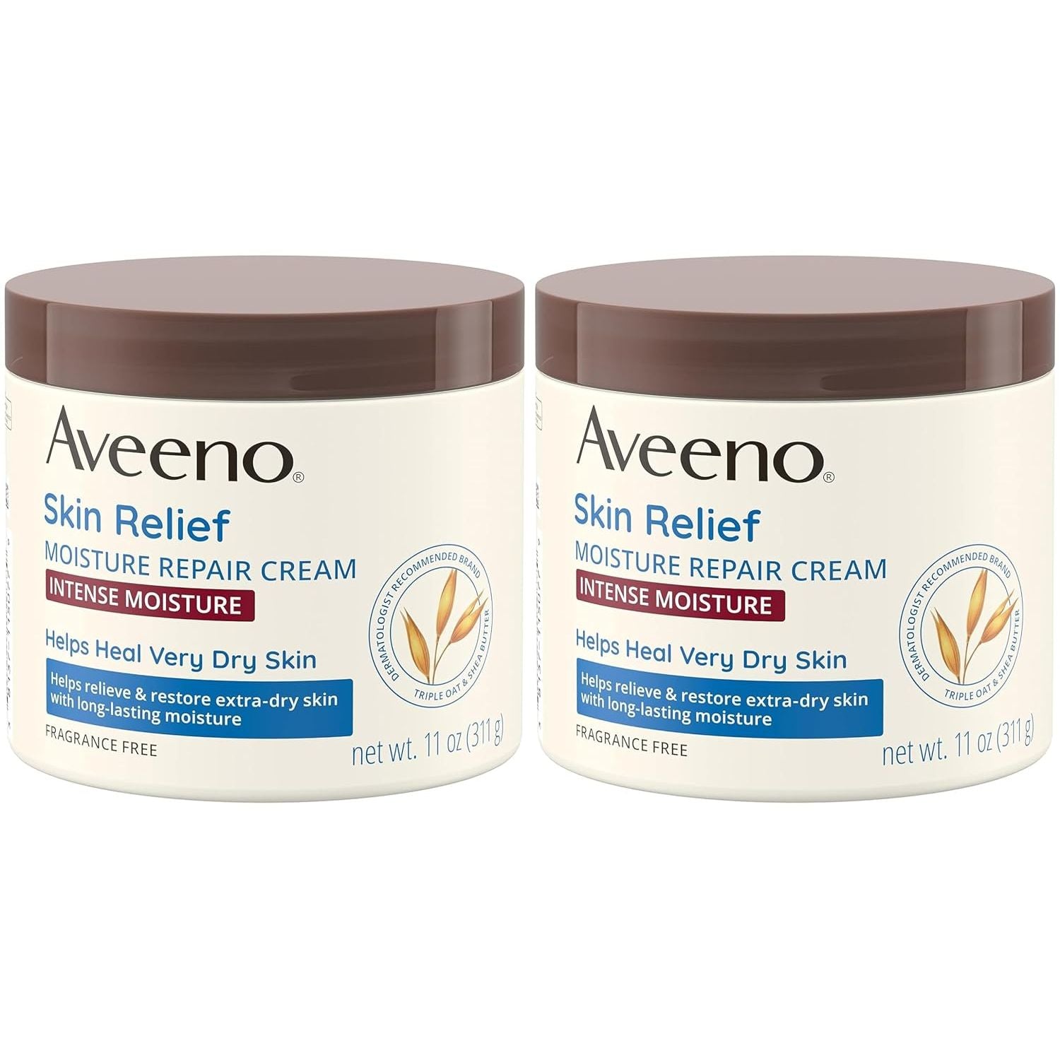 - Aveeno Skin Relief Intense Moisture Repair Body Cream with Triple Oat & Shea Butter Formula, Helps Relieve & Restore Extra-Dry Skin with Long-Lasting Moisture, Fragrance-Free, 11 oz