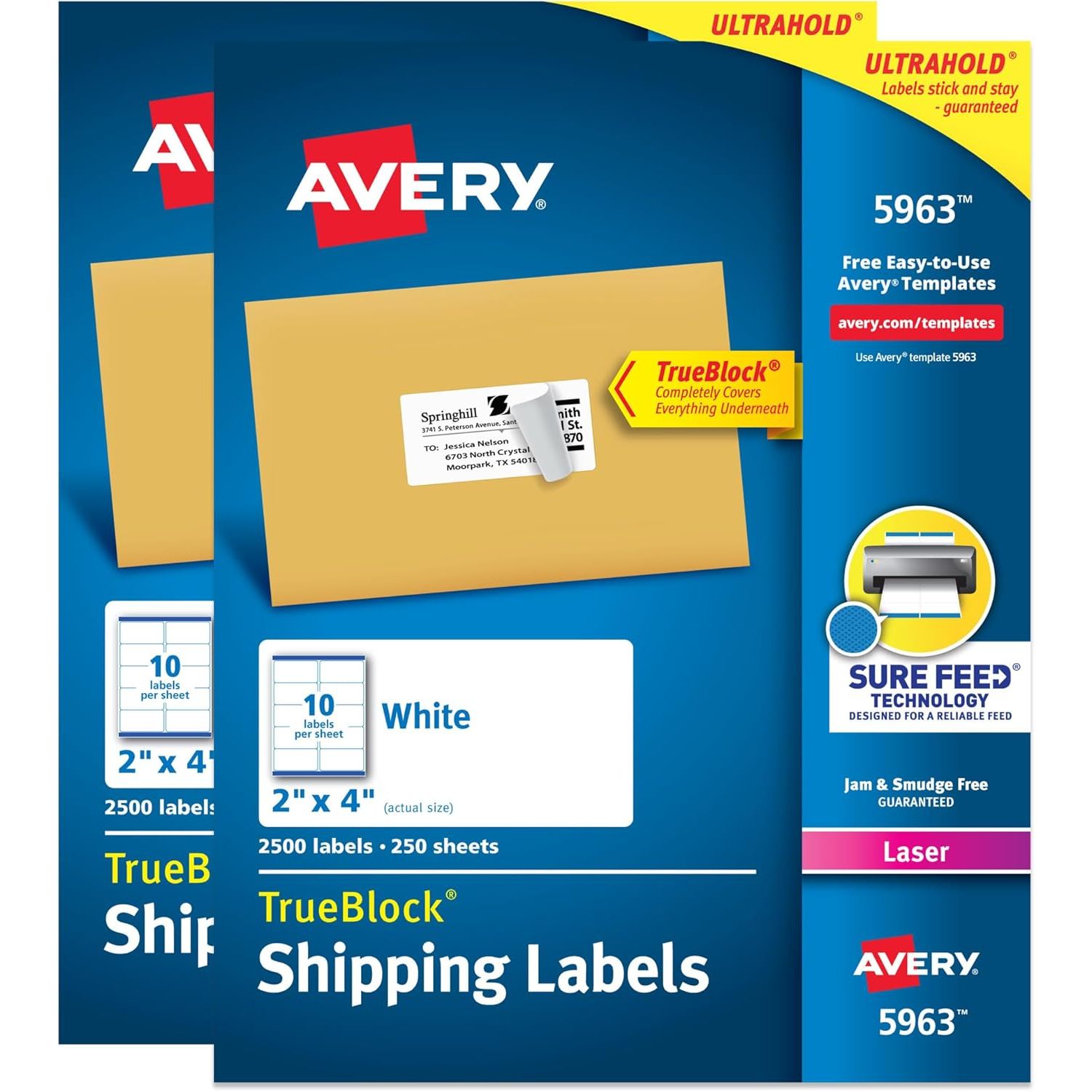 - Avery Printable Shipping Labels with Sure Feed, 2" x 4" Customizable Stickers, White, 1,000 Blank Mailing Labels, Great for Mailing, Shipping, and More (5163)