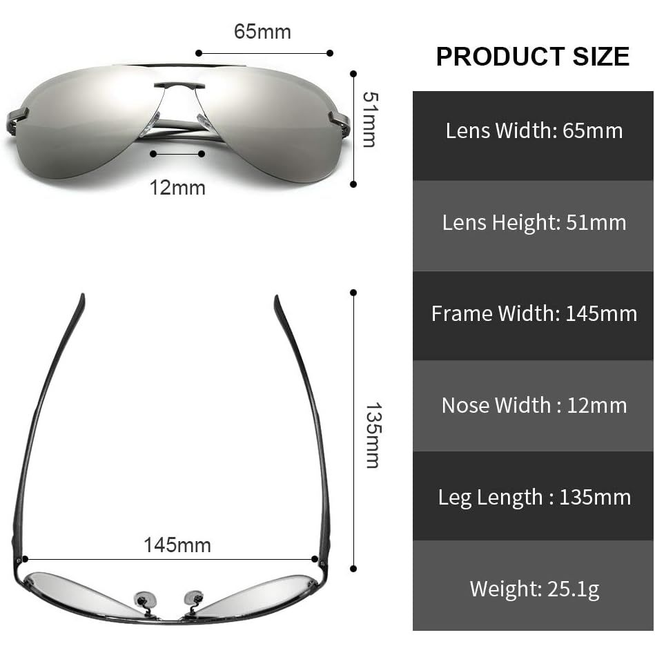- 【Unique design】The arm of mirror sunglasses for men is designed in stainless steel for a comfortable fit and can be stretched to fit the face. The nose bridge can also be adjusted.