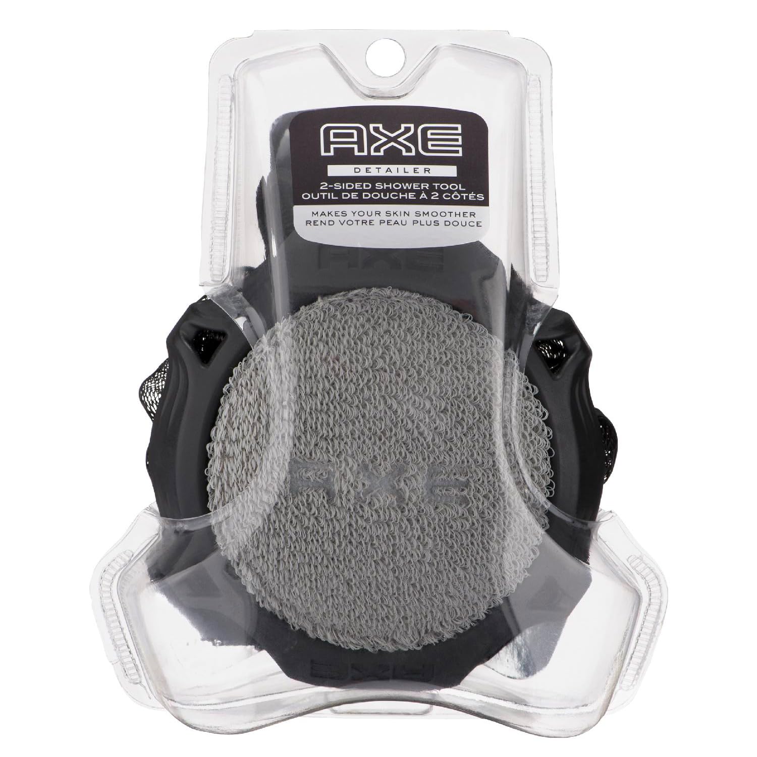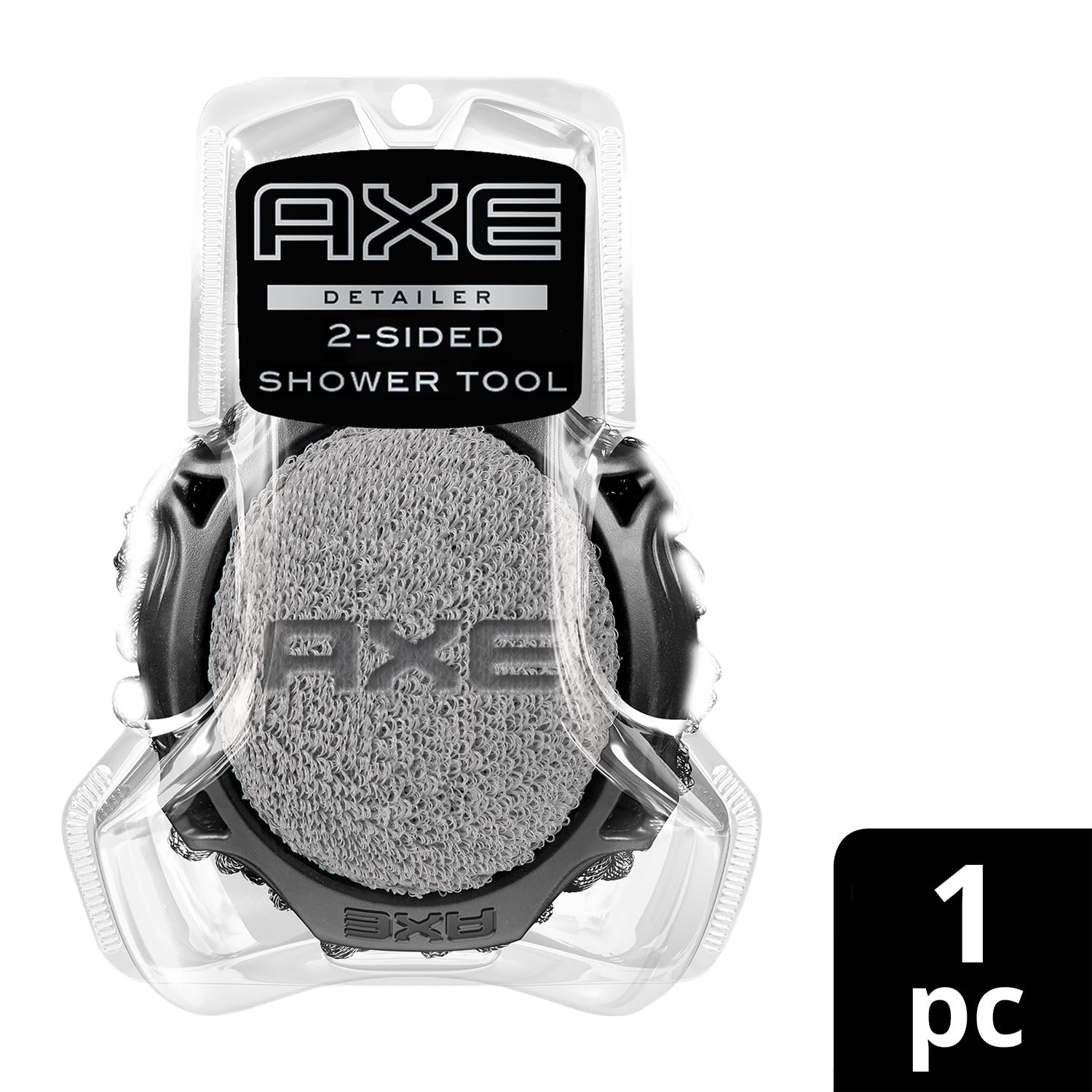 - AXE Mens Shower Scrubber Tool, 2-Sided Detailer, Gray Color, Mesh Side for Lathering, Exfoliator for Smoothing Dry, Rough Skin