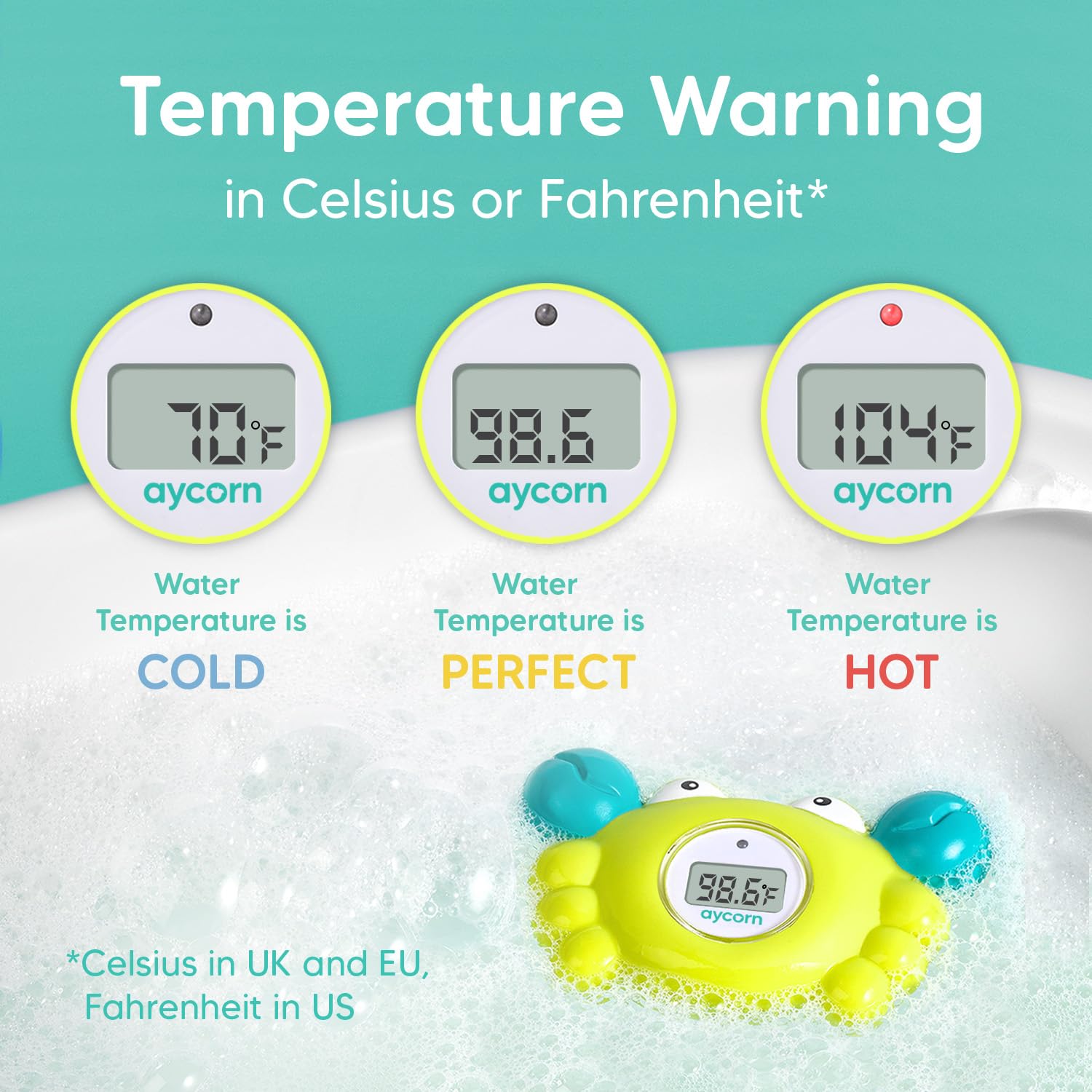 - Aycorn Digital Baby Bath & Room Thermometer - Fahrenheit with LED Display & Temperature Warning - Infant Baby Bath Toys Floating Toy Thermometer